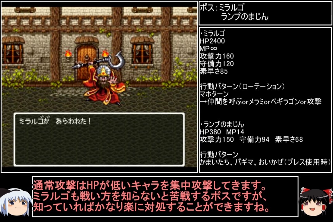 5のダークシールドに続く、通常プレイでは使われないダークホースの解禁。<br>意外な装備や呪文・特技が活躍する瞬間が本プレイの醍醐味ですね。<br>そして17年の時を超えて、黒歴史とまではいかずとも灰歴史くらいの産物が出土しました。まさか日の目を見る日がくるなんて、思いもしませんでしたね。<br><br>画面サイズが変わるコメントを見掛けましたが、part0やpart25でも語っているように設定で直ります。一応共通説明文に記載しましたが、やり方がわからない場合はpart0を参照ください。<br><br>前→<a href="https://www.nicovideo.jp/watch/sm39704871" class="watch">sm39704871</a> 次→<a href="https://www.nicovideo.jp/watch/sm39766306" class="watch">sm39766306</a><br><br>YouTube版→<a href="https://youtu.be/sRBOQg6a3rY" target="_blank" rel="noopener nofollow">https://youtu.be/sRBOQg6a3rY</a><br><br><br>※動画の大きさが変わる方は、お手数ですが設定→画質を自動から〇pに変えると解決します。<br>※一部機種は互換機を使用してのプレイとなります。<br><br>縛りルール(不明点はシリーズのQ&Aを参照)<br>①使った武器・防具・装飾品・道具・呪文・特技・一部特殊施設(メダル王・カジノ・移民の町)・職業(3,6,7)・仲間モンスター(4,5,6,8+7の職業)は次以降のシリーズで使用禁止。<br>(NPCキャラが使用した装備や呪文を含む。売却及び錬金素材としても使用扱い)<br><br>②裏技・バグ技の禁止。<br><br>③逃走禁止&戦闘終了時は全員生存。<br><br>④レベルを上げ過ぎない。<br>ダンジョンやボスは公式ガイドブックに記載されたレベル+3まで。<br>ラスボスは全ての呪文を習得するレベル+3程度までに収める。<br><br>⑤裏ボスも規定回数、規定ターン以内に倒す。<br>(6の裏ダンジョン突入時のみ、条件を満たすため①の職業を解禁)<br><br>(おまけ)<br>宝は可能なものに限り全回収。<br>5と6は同一モンスターの仲間不可。<br>回避可能なボスも全て倒す。<br><br><br>この動画で利用している株式会社スクウェア・エニックスを代表とする共同著作者が権利を所有する著作物及びスギヤマ工房有限会社が権利を所有する楽曲の転載・配布は禁止いたします。<br>(C) ARMOR PROJECT/BIRD STUDIO/SQUARE ENIX All Rights Reserved.<br>(C) SUGIYAMA KOBO (P) SUGIYAMA KOBO<br><br>AquesTalk2ライセンスID:AQTK2WINUSR23122185<br /><br><br>❤いいねを押していただけるとモチベーションと投稿速度が上がるので宜しくお願い致します!<br><br>作者ツイッター→ <a href="https://twitter.com/nig0117" target="_blank" rel="noopener nofollow">https://twitter.com/nig0117</a><br>PIXIV FANBOX→ <a href="https://sutanokeiji.fanbox.cc/" target="_blank" rel="noopener nofollow">https://sutanokeiji.fanbox.cc/</a><br><br>( 以前はWEB小説書いてました→ <a href="https://kakuyomu.jp/works/1177354054884910267" target="_blank" rel="noopener nofollow">https://kakuyomu.jp/works/1177354054884910267</a> )