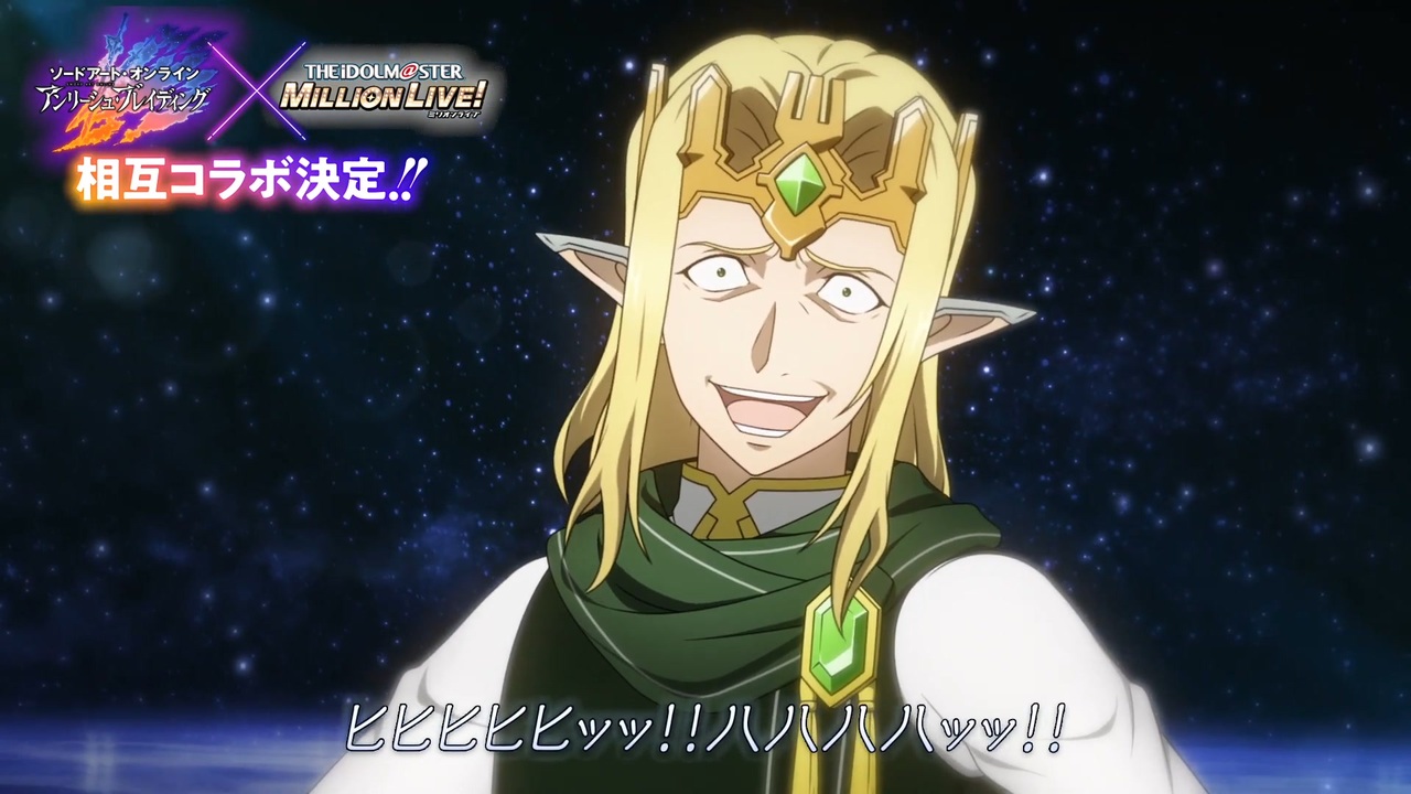 「ソードアート・オンライン」と「アイドルマスター ミリオンライブ!」がコラボ決定!<br>その第一弾として「アリブレ」が「アイドルマスター ミリオンライブ!」と相互コラボします。<br>コラボについて妖精王オベイロンプロデューサー(CV #子安武人)からのメッセージをご覧ください。<br><br>コラボの詳細情報は今後も随時公開予定!<br>12月12日(日)に開催されるリアルステージイベント「ミリシタ感謝祭 2021~2022」において、『アイドルマスター ミリオンライブ! シアターデイズ』からのコラボ情報を発表予定です。<br><br>■ミリシタ感謝祭 2021~2022<br>2021年12月12日(日)17:00~(予定)<br><a href="https://millionlive-campaign2021.idol" target="_blank" rel="noopener nofollow">https://millionlive-campaign2021.idol</a>...<br><br><br>▽ソードアート・オンライン アンリーシュ・ブレイディングについて<br>公式サイト:<a href="https://ab.sao-game.jp/" target="_blank" rel="noopener nofollow">https://ab.sao-game.jp/</a><br>Twitter:<a href="https://twitter.com/saoab_gameinfo" target="_blank" rel="noopener nofollow">https://twitter.com/saoab_gameinfo</a><br>ダウンロード:<a href="https://app.adjust.com/f8p4xik" target="_blank" rel="noopener nofollow">https://app.adjust.com/f8p4xik</a><br><br>▽アイドルマスター ミリオンライブ!関連リンク<br>アイドルマスター ミリオンライブ! シアターデイズ 公式サイト<br><a href="https://millionlive.idolmaster.jp/the..." target="_blank" rel="noopener nofollow">https://millionlive.idolmaster.jp/the...</a><br>アイドルマスター ミリオンライブ! シアターデイズ 公式Twitter<br><a href="https://twitter.com/imasml_theater" target="_blank" rel="noopener nofollow">https://twitter.com/imasml_theater</a><br>ダウウンロード:<a href="https://bnent.jp/imasml-theater/" target="_blank" rel="noopener nofollow">https://bnent.jp/imasml-theater/</a><br><br>