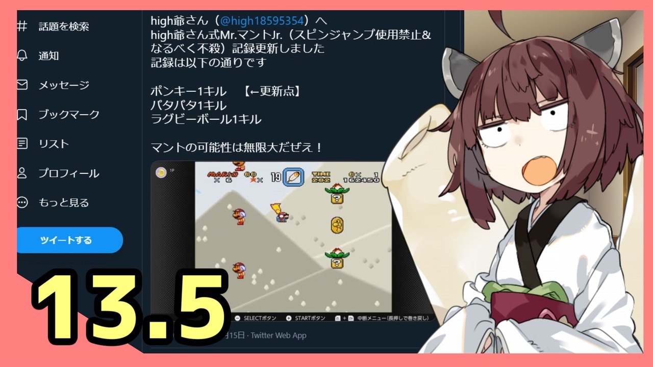 <span style="color: #e69138; font-size: 24px;">きりたん「息抜き(手抜き)。はたして縛られきりたんシリーズナンバリングでいいのか。」</span><br><br><span style="color: #ff0000; font-size: 18px;">更新の余地はまだまだあるんで皆さんもぜひどうぞ!</span><br><br><span style="color: #ff0000; font-size: 24px;">本家大本さんが更新してくれました!<br>⇒<a href="https://www.nicovideo.jp/watch/sm39764528" class="watch">sm39764528</a></span><br><br>星雲 それは君がみた光<br>ぼくがみた希望<br>星雲 それはふれあいの心<br>幸せの青い雲<br>星雲<br><br><br>天邪鬼スイーツさんTwitterと映像の掲載許可ありがとござます!<br><br>ー縛り内容ー<br> ①ノーダメージ縛り(強化はよし)<br> ②スピンジャンプ禁止(ブロック破壊は可)<br> ③不殺縛り(定義はpart1にて)<br> <br><br>――――――――――――――――――――――――――――――――<br><a href="https://www.nicovideo.jp/watch/sm39745906" class="watch">sm39745906</a>⇐前回:次回⇒まだよ<br><br>―――――――――――――――――――――――――――――――――――<br>★ゲーム<br>『スーパーマリオワールド』ニンテンドースイッチ版<br>★使用立ち絵<br>からい様⇒【素材】東北きりたん立ち絵:<a href="https://seiga.nicovideo.jp/seiga/im7760810" target="_blank" rel="noopener">im7760810</a><br>かみち様⇒【SDピコピコ琴葉姉妹2】:<a href="https://seiga.nicovideo.jp/seiga/im6815058" target="_blank" rel="noopener">im6815058</a><br />★投稿者<br> twitter⇒<a href="https://twitter.com/high18595354" target="_blank" rel="noopener nofollow">https://twitter.com/high18595354</a><br>