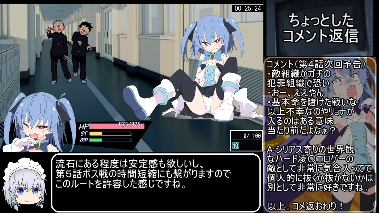 ついにハメルダー達を追い詰めたよ!<br>これでこの戦いにも決着ってこと!<br>これで町の平和は取り戻せる・・・<br>そうすればもう、あんな風に乱暴に<br>犯さ〇たり、本当は嫌なのに沢山のおちん〇で<br>無理やり気持ち良くさせられたり、<br>して、もらえなくなっちゃうんだよね・・・<br>でも、もし負けちゃったら、きっと大勢の<br>怪人たちに滅茶苦茶に犯〇れて・・・<br>そうならないように、頑張らないと!<br>でも、もし頑張っても負けちゃったら、<br>それは、仕方が、ないよね・・・♥<br><br><strong>魔法闘姫フロスティア第Ex話「♥♥♥♥♥♥♥♥」(未定)<br><br>【ShiBoo! 】</strong>様制作のR-18RPG<br><strong>【魔法闘姫フロスティア】</strong>RTAです。(ver1.0.2)<br>計測開始:ニューゲーム選択<br>計測終了:エンディングテーマが表示された瞬間<br><strong>偉大なる先駆者様→<a href="https://www.nicovideo.jp/watch/sm39487298" class="watch">sm39487298</a><br><br>前→<a href="https://www.nicovideo.jp/watch/sm39723537" class="watch">sm39723537</a><br><br>魔法闘姫シリーズRTAのマイリスト→ <a href="https://www.nicovideo.jp/mylist/70963331" target="_blank" rel="noopener">mylist/70963331</a><br><br>前作・魔法闘姫リルスティアRTA→<a href="https://www.nicovideo.jp/watch/sm38651351" class="watch">sm38651351</a><br><br>パート1と単発のマイリスト→<a href="https://www.nicovideo.jp/mylist/70659794" target="_blank" rel="noopener">mylist/70659794</a></strong><br><br>twitter:@hihidowser<br><br>スマホやタブレット等から見られない方はこちらの方の動画を参考にすると<br>見られるようになるはずです→ <strong><a href="https://www.nicovideo.jp/watch/sm38575952" class="watch">sm38575952</a></strong><br><br>本作品・<strong>魔法闘姫フロスティア</strong>の購入は下記サイトにて!<br>DLsite(PC)<br><br>HBOX(スマホ)<br>