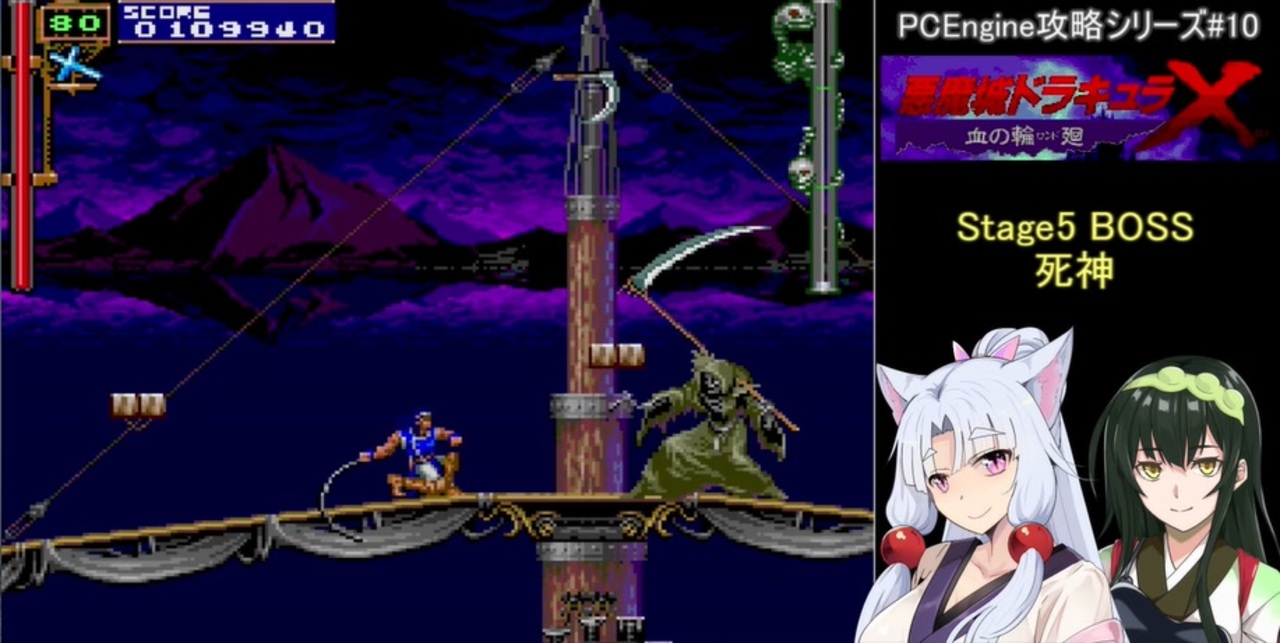 PCEngine攻略シリーズ第10弾「悪魔城ドラキュラX 血の輪廻」です。<br>東北イタコが、リヒターで表面をクリアするための攻略法を解説していきます。<br>立ち絵:谷 裕司(イタコ)、物見戸(ずん子)
