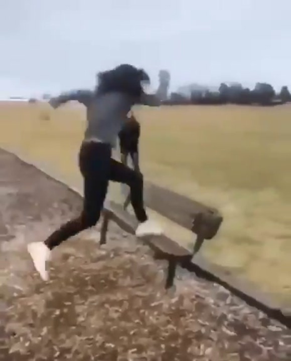 女 vs ベンチ
