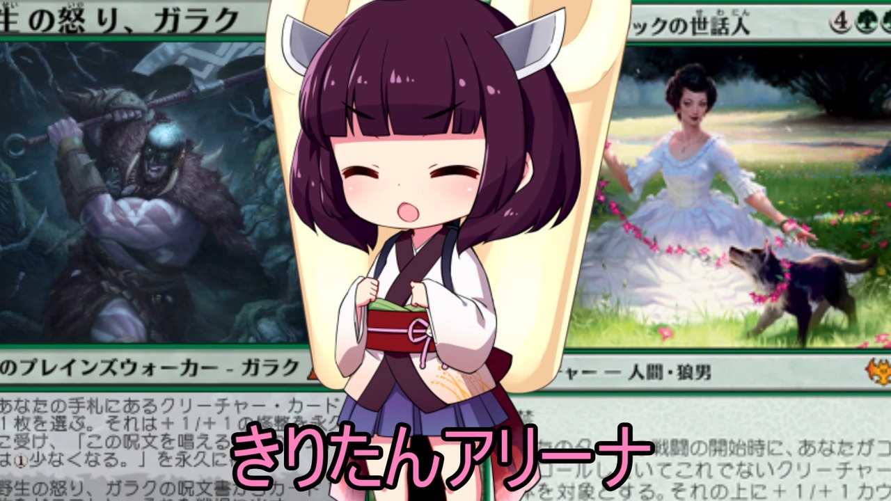 冒頭の話、投稿直前見返した時はやっぱり用意した方がいいかもなぁって感じた(手のひらクルクル) ・・・日本語カードギャラリーさえあれば楽なんですけどね(´・ω・`)<br><br>【使用デッキ】<br>緑単マナ加速ガラクデッキ<br><br>【アリーナ公式】<br><a href="https://magic.wizards.com/en/mtgarena" target="_blank" rel="noopener nofollow">https://magic.wizards.com/en/mtgarena</a><br>【配信】<br><a href="https://www.twitch.tv/kiritanex" target="_blank" rel="noopener nofollow">https://www.twitch.tv/kiritanex</a><br>【YouTube・連絡先・Twitter】<br>マイリストに表記<br><br>【前回の広告者様動画】<br>まいな様:「東北イタコの今日から始めるMTGアリーナ」<a href="https://www.nicovideo.jp/watch/sm34972717" class="watch">sm34972717</a><br>あきみず様:「イタコマジック」<a href="https://www.nicovideo.jp/series/240030" target="_blank" rel="noopener">series/240030</a><br>AHE様:「MTG一人対戦」<a href="https://www.nicovideo.jp/mylist/54219502" target="_blank" rel="noopener">mylist/54219502</a><br>ラーメン王様:「結月ゆかりのミラクル解説ラジオ」<a href="https://www.nicovideo.jp/mylist/62359037" target="_blank" rel="noopener">mylist/62359037</a><br>白ウイスキー様:「アリーナのアは茜ちゃんのア」<a href="https://www.nicovideo.jp/mylist/69289902" target="_blank" rel="noopener">mylist/69289902</a><br>ものまねうさぎ様:「初心者でもモダンがしたい!」<a href="https://www.nicovideo.jp/watch/sm32508742" class="watch">sm32508742</a><br>Luin様:「PWあかりのアリーナ対戦録」<a href="https://www.nicovideo.jp/mylist/66293742" target="_blank" rel="noopener">mylist/66293742</a><br>TKY様:「弦巻 The Gathering」<a href="https://www.nicovideo.jp/series/173355" target="_blank" rel="noopener">series/173355</a><br>レインコート様:「赤くて速いMTG」<a href="https://www.nicovideo.jp/series/189753" target="_blank" rel="noopener">series/189753</a><br>林原めぐみ好きのおっちゃん様:「ゆかマキMTG実況」<a href="https://www.nicovideo.jp/series/155646" target="_blank" rel="noopener">series/155646</a><br>BlueSky様:「【MTGA】ドラフトで遊ぶ」<a href="https://www.nicovideo.jp/mylist/67869251" target="_blank" rel="noopener">mylist/67869251</a><br>ロストドール様:「ロストドールのアリーナ対戦録」<a href="https://www.nicovideo.jp/series/242181" target="_blank" rel="noopener">series/242181</a><br>あいあい様:「【MOレガシー】太正の白スタックスで帝都防衛」<a href="https://www.nicovideo.jp/mylist/70238207" target="_blank" rel="noopener">mylist/70238207</a><br>TEPIA様:「紲星あかりはライブラリーをめくりたい」<a href="https://www.nicovideo.jp/watch/sm35229450" class="watch">sm35229450</a><br>稲尾様:「とにかくタフネスで殴り抜ける。」<a href="https://www.nicovideo.jp/mylist/66067276" target="_blank" rel="noopener">mylist/66067276</a><br>ソンチョー様「4人でMTGAやりましょ!」<a href="https://www.nicovideo.jp/mylist/64931307" target="_blank" rel="noopener">mylist/64931307</a><br><br><br><a href="https://www.nicovideo.jp/mylist/63851869" target="_blank" rel="noopener">mylist/63851869</a> 前:<a href="https://www.nicovideo.jp/watch/sm39754828" class="watch">sm39754828</a> 次:<a href="https://www.nicovideo.jp/watch/sm39810640" class="watch">sm39810640</a><br>