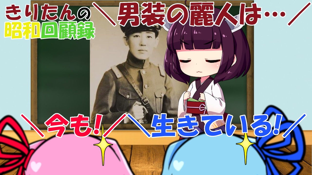 <strong>ようこそ! 昭和回顧録へ!</strong><br><br>昭和23年、来てます!<br>前回は色々と幸運が重なったのか、初めて10000再生を越えてしまいました。正直びっくりです。<br>とても嬉しい反面、しっかりしたものを作っていかないとなぁと、改めて思う日々でした。<br><br>では、ごゆっくりとお楽しみください!<br><br>あ、ちなみに李香蘭の回はこちら! → <a href="https://www.nicovideo.jp/watch/sm39244935" class="watch">sm39244935</a><br><br><a href="https://www.nicovideo.jp/watch/sm39709008" class="watch">sm39709008</a> ← 前 次 → <a href="https://www.nicovideo.jp/watch/sm39865397" class="watch">sm39865397</a><br>回顧目録 → <a href="https://www.nicovideo.jp/mylist/70366107" target="_blank" rel="noopener">mylist/70366107</a><br>YouTube版 → <a href="https://youtu.be/d8aQfNbBgUM" target="_blank" rel="noopener nofollow">https://youtu.be/d8aQfNbBgUM</a><br><br>シリーズ一話マイリスト →<span style="color: #006699;"> <a href="https://www.nicovideo.jp/mylist/69322831" target="_blank" rel="noopener">mylist/69322831</a></span><br>試作品マイリスト → <a href="https://www.nicovideo.jp/mylist/69322827" target="_blank" rel="noopener">mylist/69322827</a><br><br>更新情報とか質問とかツイッター → <a href="https://twitter.com/suzakatsuki" target="_blank" rel="noopener nofollow">https://twitter.com/suzakatsuki</a> <br><br>~お借りしたもの~<br>キャスト:東北きりたん、琴葉茜、琴葉葵<br>立ち絵:blueberry様(SD東北きりたん他)、りんどう様(ボイロミニキャラ後ろ姿素材)<br>背景:Pixabay様<br>小物類:写真AC様<br> イラストAC様<br> いらすとや様<br> パブリックドメインQ様<br> ウマ娘様 <a href="https://umamusume.jp/" target="_blank" rel="noopener nofollow">https://umamusume.jp/</a><br><br>BGM:こんとどぅふぇ HiLi様<br> OP ほいっぷ!インストゥルメンタル<br> BGM お昼寝まくら、烏丸の地、メルヘンぼうけんたい、おほしさまとなみだ、あたふたあたふた、ボクの旅立ち、ひとりぼっちの妖精-キミ-、シーサイド・クッキー、目が覚めた<br><br>効果音:魔王魂様<br> On-Jin ~音人~様<br><br>※リンク情報などは、マイリストの説明欄にて補足しています。