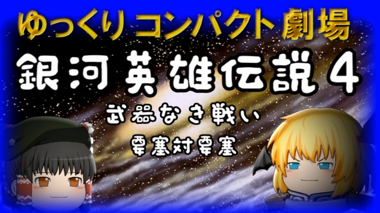 「ゆっくり文庫リスペクト」第八弾。<br><br>「銀河英雄伝説」のゆっくりでうっかりな文庫動画です。<br><br>今回第3巻の分量を30分で納めました。<br>前回までの計算では60分になるはずだが、ついに計算を超えた。<br>勝った。<br>代償として解説部分が非常少ない。<br>これで「ニコニコ動画講座」に居て良いのだろうか?<br>いや物語中に解説しているから大丈夫なはず。<br>たぶん。<br><br>第1回の動画情報にも書きましたが、本シリーズは「バーミリオン会戦」までです。<br>なので計算上ではあと2回で終わるはず。<br>たぶん。<br><br>・解説1 <a href="#" class="seekTime" data-seekTime="0:20" onclick="seekNicoPlayer('#0:20'); return false;">#0:20</a><br>・武器なき戦い <a href="#" class="seekTime" data-seekTime="1:31" onclick="seekNicoPlayer('#1:31'); return false;">#1:31</a><br>・解説2 <a href="#" class="seekTime" data-seekTime="12:33" onclick="seekNicoPlayer('#12:33'); return false;">#12:33</a><br>・要塞対要塞 <a href="#" class="seekTime" data-seekTime="15:10" onclick="seekNicoPlayer('#15:10'); return false;">#15:10</a><br>・解説3 <a href="#" class="seekTime" data-seekTime="28:51" onclick="seekNicoPlayer('#28:51'); return false;">#28:51</a><br><br>前⇒<a href="https://www.nicovideo.jp/watch/sm39377623" class="watch">sm39377623</a><br><br>次⇒<a href="https://www.nicovideo.jp/watch/sm40127980" class="watch">sm40127980</a><br><br />うp主のクリ奨扱いの番組(ギフト)<br>●動画投稿講座(海兵隊式)<br><a href="https://www.nicovideo.jp/watch/sm41183459" class="watch">sm41183459</a><br><br>●ほしいものリスト(同じものでも全然嬉しい)<br><a href="https://www.amazon.co.jp/hz/wishlist/ls/20X2QKDPSW451?ref_=wl_share" target="_blank" rel="noopener nofollow">https://www.amazon.co.jp/hz/wishlist/ls/20X2QKDPSW451?ref_=wl_share</a><br>●匿名で送る方法<br><a href="https://appllio.com/amazon-wish-list" target="_blank" rel="noopener nofollow">https://appllio.com/amazon-wish-list</a><br><br>うp主の動画<br>ゆっくりのワイドショー⇒<a href="https://www.nicovideo.jp/mylist/45200880" target="_blank" rel="noopener">mylist/45200880</a><br>ゆっくりコンパクト劇場⇒<a href="https://www.nicovideo.jp/mylist/67330756" target="_blank" rel="noopener">mylist/67330756</a><br>ゆっくりロードショー⇒<a href="https://www.nicovideo.jp/mylist/51596849" target="_blank" rel="noopener">mylist/51596849</a><br>おもちゃ箱⇒<a href="https://www.nicovideo.jp/series/265908" target="_blank" rel="noopener">series/265908</a><br>ようつべセブンのチャンネル<br><a href="http://www.youtube.com/c/sevenyoutube" target="_blank" rel="noopener nofollow">http://www.youtube.com/c/sevenyoutube</a><br><br>ニコニコ大百科 ゆっくりのワイドショー<br><a href="https://dic.nicovideo.jp/id/5337230" target="_blank" rel="noopener nofollow">https://dic.nicovideo.jp/id/5337230</a><br><br>ニコニコ大百科 ゆっくり文庫リスペクト<br><a href="https://dic.nicovideo.jp/id/5701480" target="_blank" rel="noopener nofollow">https://dic.nicovideo.jp/id/5701480</a>