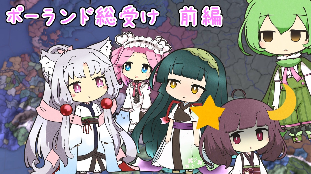 史実で分割してきた奴らを野放しにしてその後同時に戦うことで分割される気分を味わう企画です<br>縛りというよりはコンセプトというべきか<br>縛り1;領土拡張は初期のポーランド、リトアニア、モルダヴィア、チュートン騎士団、リヴォニア騎士団、リガの領土まで<br>その範囲外に領土や従属国をもってはいけない<br> ちゃんと分割してきた奴らが育つように<br>縛り2;縛り1の範囲に領土を持ってない国に宣戦してはならない<br> 定期的にライバルCBなんかで宣戦して弱らせたら意味無いので<br>縛り3;縛り1の範囲に領土を持ってない国から講和で何かを求めてはならない<br> 定期的に賠償金なんかを巻き上げたら弱っちゃうので<br>縛り4;1500年以降同盟、独立保障、警告、列強の介入、信仰の擁護者、和平の強要、宗教連盟への加入の禁止<br> アルバニアトラップなどの手法で弱らせないように<br> 1500年以降なのは初期拡張の段階で同盟国がいないのはちょっとめんどくさいからです<br>縛り5;1600年1月1日~1600年12月31日までにオーストリア、オスマン、ロシアを主戦国若しくは共戦国にして宣戦布告する<br>可能ならブランデンブルクも主戦国若しくは共戦国にする<br> 史実で分割してきた奴らみんな纏めて殺す<br>縛り6;縛り5による宣戦布告が全て完了した時点で縛り1~4は解除<br> 大体戦争中に信仰の擁護者のバフを受けるための規定<br>縛り7;オーストリア、オスマン、ロシアとの講和では戦勝点75以上の要求を通す<br> 首都陥落、白紙講和!だと簡単すぎだし<br>縛り8;1600年以降傭兵の禁止<br> 破産覚悟で傭兵雇えば大体なんとかなっちゃうから<br><br>VOICEVOX:ずんだもん VOICEVOX:四国めたん<br>おまけの曲;森へ行きましょう<br>httpwww.mu-tech.orgTraditionalSzlaDzieweczka.html<br>demsatoさんのgif素材を使ったけど記載を忘れてました、申し訳ない<br>version1.32.2<br>DLC Art of War, El Dorado, Common Sense, Rights of Man, Emperor,Dharma,The Cossacks,Third Rome,Digital Extreme Edition Upgrade Pack<br>Europa Universalis IV Copyright © 2013 Paradox Interactive AB. www.paradoxplaza.com<br>前;これが最初<br>次;<a href="https://www.nicovideo.jp/watch/sm39814717" class="watch">sm39814717</a><br>eu4過去作のpar/t1リスト<a href="https://www.nicovideo.jp/mylist/71271218" target="_blank" rel="noopener">mylist/71271218</a>