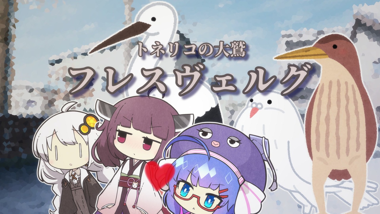 10ヶ月あっためてたネタ <br><br>追記:各CVについて、【すごい鳩胸のグリンカムビ:CeVIO AI小春六花】【すごいガニ股のフィアラル:VOICEVOX波音リツ】【コウノトリのフレスヴェルグ:CeVIO AIさとうささら】【最初の「風見壮一」の声:VOICEVOX春日部つむぎ】です。無駄に豪華 <br><br><br>◆こどもつくる回→ <a href="https://www.nicovideo.jp/watch/sm38690379" class="watch">sm38690379</a><br><br /><br>◆劇場シリーズ→ (女) <a href="https://www.nicovideo.jp/series/214892" target="_blank" rel="noopener">series/214892</a> (男) <a href="https://www.nicovideo.jp/series/380223" target="_blank" rel="noopener">series/380223</a> <br>◆音楽シリーズ→ <a href="https://www.nicovideo.jp/series/230458" target="_blank" rel="noopener">series/230458</a> <br>◆実況シリーズ→ <a href="https://www.nicovideo.jp/series/325546" target="_blank" rel="noopener">series/325546</a> <br>◆投稿者のツイ→ <a href="https://twitter.com/kasumi_so_1415" target="_blank" rel="noopener nofollow">https://twitter.com/kasumi_so_1415</a> <br>◆かすみそうなろいど二次創作ライセンス <a href="https://commons.nicovideo.jp/works/sm38565530" target="_blank" rel="noopener nofollow">https://commons.nicovideo.jp/works/sm38565530</a><br><br>◆使用素材についてはコンテンツツリーおよび動画内クレジットをご参照ください<br>