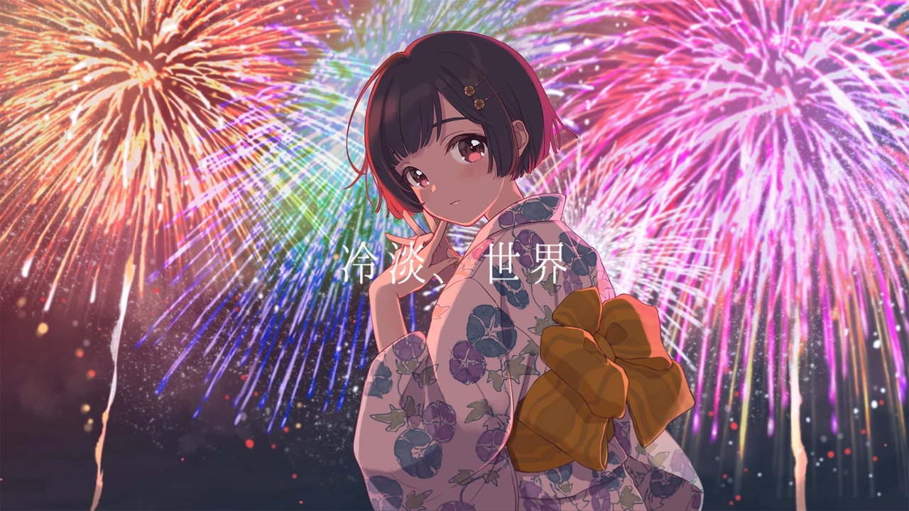 クリスマスソングです<br><br>「冷淡、世界」<br>Vocal:音街ウナ<br>Music/Words/Movie:宮之 悟<br>Arrangement/Mix:かさぶた<br>VOCALOID Edit:ハチナナ<br>Illustration:鴨川彰<br><br>off vocal版→<a href="https://piapro.jp/myn0123" target="_blank" rel="noopener nofollow">https://piapro.jp/myn0123</a><br>Twitter→<a href="https://twitter.com/myn0123" target="_blank" rel="noopener nofollow">https://twitter.com/myn0123</a><br><br><歌詞><br>夏草揺れる土手をふたりで歩いた<br>足先触れくすぐったかった<br>忙しく行き交う人の間を縫って<br>探した もっと近く見たかった<br><br>まだ未来だけがあった<br>無邪気に笑った <br>打ち上がる花の軌道を追った<br>また煌めいた 水面も <br>その横顔も この胸の鼓動も<br><br>色取り取りのかき氷のシロップ悩んだ<br>本当はどれも同じなんだぜ<br>そんなの知ったところでどうでもいいんだ<br>触れそうなこの距離 及ばない<br><br>まだ見えない世界だらけ<br>それでもこれで<br>これだけでいいって思ったり<br>また来年見にこようって <br>たしかそう言った その顔も忘れた<br><br>あれからいくつ年が経って<br>できることだってそりゃ増えて<br>だけど虚しさばかりが勝って<br>いつも祭りのあとのようで<br>無意味に引っ張り出し点けた<br>イヴの空の下 手持ち花火は<br>変わらず綺麗だな<br><br>まだ未来だけがあった <br>無邪気に笑った <br>打ち上がる花の軌道を追った<br>今 当たり前のようにその背も追い越して<br>見えたものはなんだ<br><br>ただただ 冷淡だ 世界<br>まだまだ あの夏にいたい