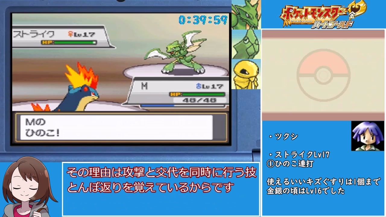 化けの皮が剝がれてきました(HP減少)<br>前:<a href="https://www.nicovideo.jp/watch/sm39723127" class="watch">sm39723127</a><br>次:<a href="https://www.nicovideo.jp/watch/sm39862473" class="watch">sm39862473</a><br>〈基本ルール〉<br>ワタル撃破のRTA<br>「だいじょうぶ」を選択した瞬間計測開始。「THE END」で計測終了。<br>バグ技禁止<br>通信はゲーム内NPCのみ可<br>計測終了時に『ひきゃく』の戦闘回数が一番多い<br>※『ひきゃく』はコガネシティの北ゲートで入手できる『オニスズメ』を指す<br><br>・けいさん作のひきゃくチャートを参考にさせていただきました<br>ブロマガがサービス終了してるのでリンクは無いです…<br>・左下はムエド兄貴に描いていただいたものです