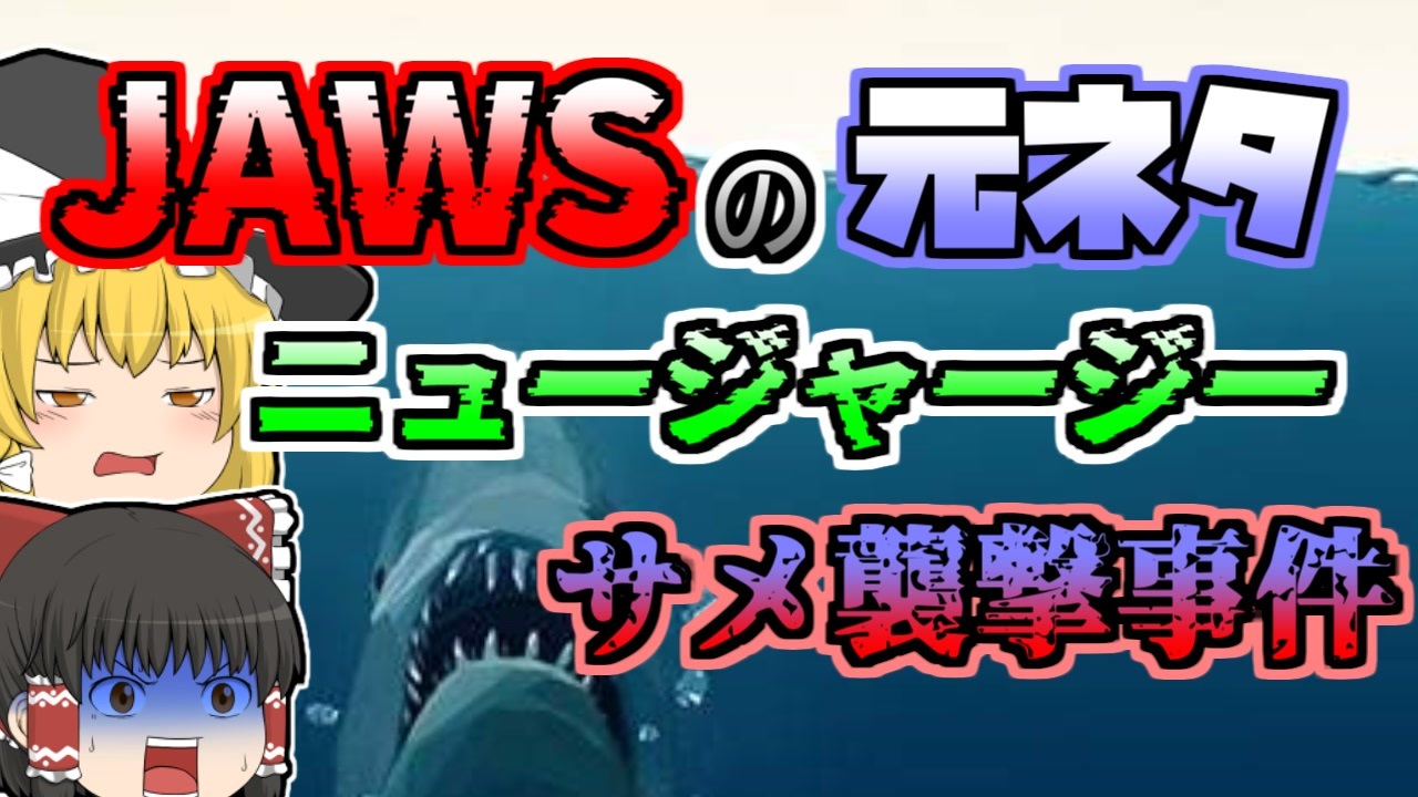 #ゆっくりするところ #サメ #食害<br>今回紹介するのは、以前から多くのリクエストを頂いていました「ホホジロザメ襲撃」です。<br>1916年のアメリカ、ニュージャージー州にあるリゾート地では、多くの海水浴客が遊泳していました。<br>しかし、その中の一人の男性が、突然何かに襲われ、重傷を負い、亡くなりました。<br>この当時「サメが人を襲う」というのは常識ではなく、唯一可能性がある「ホホジロザメ」も、北半球には生息していないものだと考えられていました。<br><br>しかし、この襲撃はこれだけでは終わりません。<br>数十キロ離れた地点でも、同じサメによる被害がどんどん拡大していきました。<br><br>引用:出展:参考資料<br>Wikipedia<br>ishort.ink/gGij<br>ishort.ink/R7oQ<br>ishort.ink/N3q4<br><br />※この動画は過去の事件を知り、現在でも同じことが発生する危険性を再認識、関与しないように促すための動画であり、視聴者を扇動、動揺を誘うためのコンテンツではありません。<br><br>ご要望にお応えして、メンバーシップの開設を行いました。<br>下記URLからも登録可能ですので、ご興味がある方は是非ご参加ください。<br><a href="https://www.youtube.com/channel/UCcT5a1J7XJW7CLYI2RKl4pw/join" target="_blank" rel="noopener nofollow">https://www.youtube.com/channel/UCcT5a1J7XJW7CLYI2RKl4pw/join</a><br><br><br>Twitter<br>→<a href="https://twitter.com/yukkurisurutoko" target="_blank" rel="noopener nofollow">https://twitter.com/yukkurisurutoko</a><br><br>取り急ぎ、簡易的にですがマイリストを作りました。<br>【ゆっくり解説】事故・事件関係紹介リスト <br><a href="https://www.nicovideo.jp/mylist/71034319" target="_blank" rel="noopener nofollow">https://www.nicovideo.jp/mylist/71034319</a><br>【ゆっくり解説】放射線系事故<br><a href="https://www.nicovideo.jp/mylist/71034368" target="_blank" rel="noopener nofollow">https://www.nicovideo.jp/mylist/71034368</a><br>【ゆっくり解説】鉄道系事故・事件関連<br><a href="https://www.nicovideo.jp/mylist/71034379" target="_blank" rel="noopener nofollow">https://www.nicovideo.jp/mylist/71034379</a>