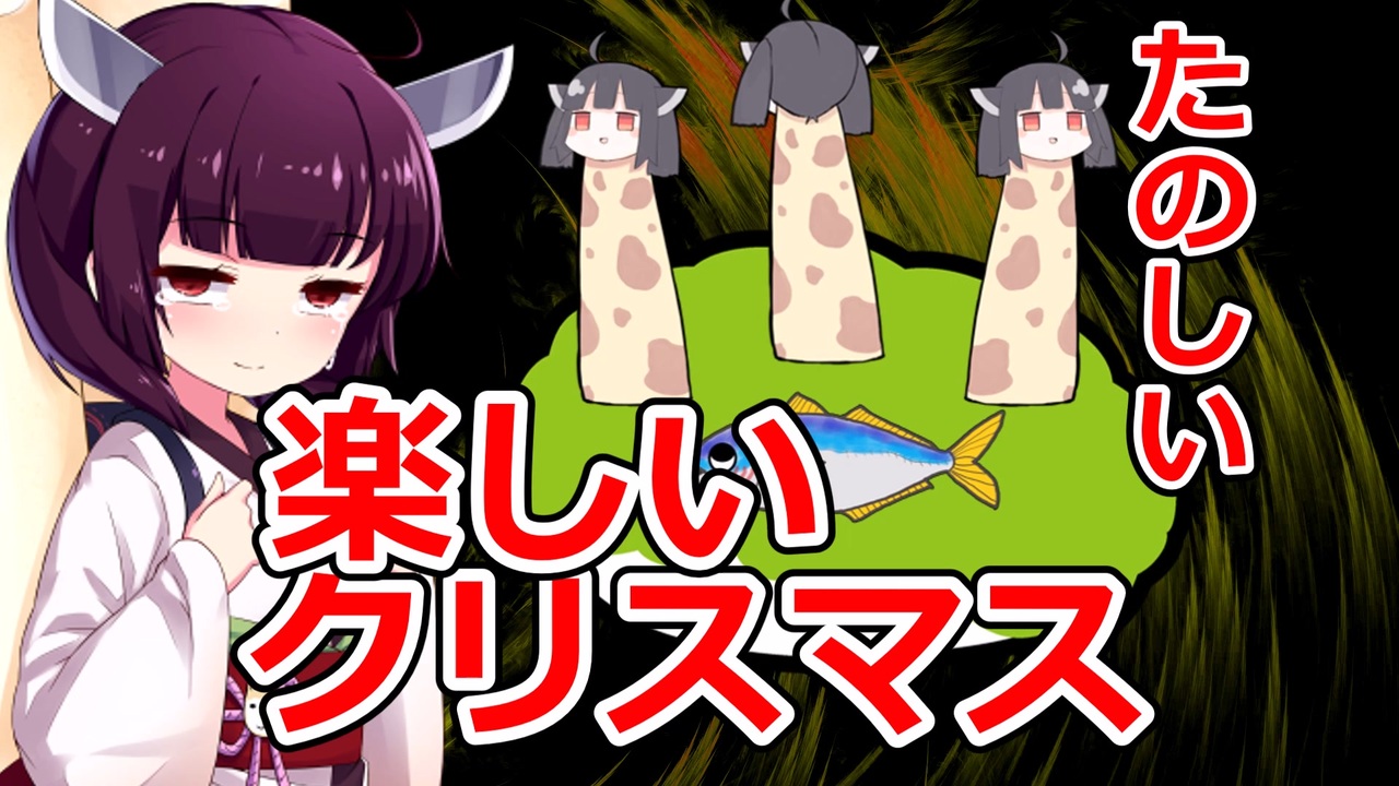 クリスマス文化を受容していない東北家に絶望した去年のきりたん。<br>今年はクリスマスパーティーに参加することになったのだが・・・。<br><br>今年の動画投稿はこれで最後になりそうです。<br>皆様、たくさんの視聴・コメント・いいね・広告・フォロー等、<br>本当にありがとうございました。<br>投稿開始して4か月ほどになりますが、<br>こんなに再生いただけるとは考えもしませんでした。<br>来年も投稿を続けられたらといいなと思います。<br><br>あかりちゃんを買うか悩み中。<br>買ったとしてどんなキャラにするか・・・、<br>やっぱり白鳳時代(飛鳥時代)腐女子かな?<br><br>ヒカリモノ様、かすみ様、evl様、<br>タメナ様、hinode様、N2様、<br>ばすたー様、この人様、るふぁ様、<br>フリー素材あそび様、あかね様、<br>のーと様、もっとぅー様、かに様、<br>ねぎ様、きつね様、山雪様、<br>オメガくん様、青木つかさ様(青きりん様)、リーサルTNTN様、<br>松田様、アオイロ様、るたまる様、<br>ぬてつ様、drpo様、rainin様、<br>φ(゚ω゚*)o 様、フロースガル様、mori様、<br>inukun様、maskmelon様、たしなみ様、<br>ナヌーク様、ゲスト様、てすた様、<br>バサロ様、MPひよこ様、なさげ様、<br>やちす様、ゲスト様、(ノ)・ω・(ヾ)ムニムニ様、<br>そののの様、<br>ご広告ありがとうございました。<br><br>フリー素材あそび様<br>1万再生のお祝いありがとうございます!<br><br>--------------------------------------------------------------------<br>◆きまぐれコメント返し第一回(最終回)<br>「今さっきそのコメしたワイは・・・」<br>⇒おっさんだって言わない=おっさんでは無いという事。<br> 良かったね!<br><br>「あかりちゃんついに出てくるのか…まともであってくれ…」<br>⇒すまない<br>