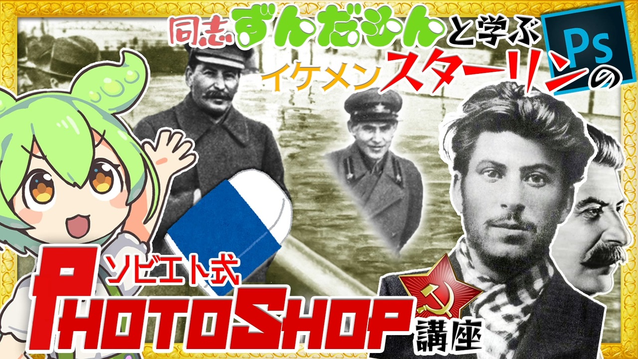 <span style="color: #ff0000;"><strong>続編(?)のソ連建国100周年動画あげました!→<a href="https://www.nicovideo.jp/watch/sm41579083" class="watch">sm41579083</a></strong></span><br><br>ソ連解体とクリスマスにちなんだ内容です。<br>講座と題してますが、ほぼ9割ネタ動画です。(真面目なフォトショップ講座要素があるにはある)<br><br>※Adobe Photoshop2022を使用しています。<br><br>【別側面祭参加】<br>解説ジャンル・共産趣味動画は初めてです。<br>普段はパラドゲーの実況・セヤナー劇場を作ってます。<br><br> 【stellaris】古代スパルタRP <a href="https://www.nicovideo.jp/mylist/71981725" target="_blank" rel="noopener">mylist/71981725</a><br> セヤナー劇場 <a href="https://www.nicovideo.jp/mylist/72068713" target="_blank" rel="noopener">mylist/72068713</a><br> 【HOI2】都道府県大戦MOD <a href="https://www.nicovideo.jp/mylist/71276279" target="_blank" rel="noopener">mylist/71276279</a><br><br>音声使用<br> VOICEVOX:ずんだもん Voiced by CoeFont.CLOUD(アベルーニ)<br><br>報道見てるとゴルバチョフ辞任の25日がソ連崩壊の日みたいに言われますが、<br>ソ連最高会議の宣言は26日ですよね?(不安になった)
