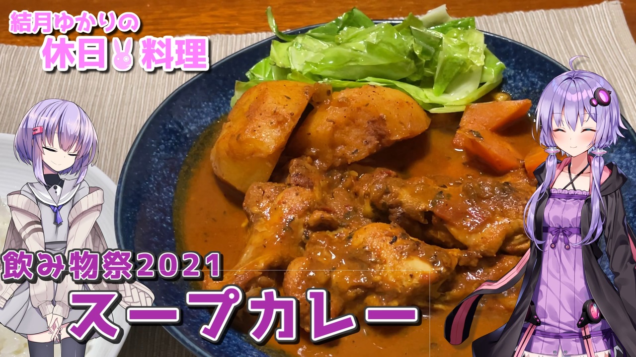 平日より時間のある休日。<br>そんな日にちょっと手の込んだ料理をしてみませんか?<br><br>今回はエナメル様(<a href="https://www.nicovideo.jp/user/20326868" target="_blank" rel="noopener">user/20326868</a>)主催の「飲み物祭2021」に参加しました!<br>カレーは飲み物、スープカレーならさらにドン!ということでスープカレーです。<br><br>前:<a href="https://www.nicovideo.jp/watch/sm39735799" class="watch">sm39735799</a><br>次:<a href="https://www.nicovideo.jp/watch/sm39882834" class="watch">sm39882834</a><br /><br>結月ゆかりの休日料理 :<a href="https://www.nicovideo.jp/mylist/71864242" target="_blank" rel="noopener">mylist/71864242</a><br>遊戯王マスターデュエル :<a href="https://www.nicovideo.jp/mylist/72766223" target="_blank" rel="noopener">mylist/72766223</a><br>単発 :<a href="https://www.nicovideo.jp/mylist/72128203" target="_blank" rel="noopener">mylist/72128203</a><br>Twitter :<a href="https://twitter.com/kuro0968" target="_blank" rel="noopener nofollow">https://twitter.com/kuro0968</a>