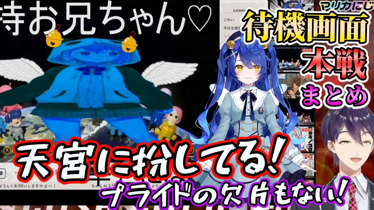 第4回マリカにじさんじ杯の本選の待機画面でアピールするライバーへツッコミ続ける剣持刀也と舞元啓介の様子まとめです<br><br>◆運営視点<br>【マリオカート8DX】第4回マリオカートにじさんじ杯 本戦【#マリカにじさんじ杯】<br><a href="https://www.youtube.com/watch?v=UQrYanCpQRA" target="_blank" rel="noopener nofollow">https://www.youtube.com/watch?v=UQrYanCpQRA</a><br><br>《主催》<br>剣持刀也:<a href="https://t.co/dNfUPFBBch?amp=1" target="_blank" rel="noopener nofollow">https://t.co/dNfUPFBBch?amp=1</a><br><br>◆タイムスタンプ◆<br><a href="#" class="seekTime" data-seekTime="0:00" onclick="seekNicoPlayer('#0:00'); return false;">#0:00</a> 準々決勝Aリーグ<br>(愛園愛美、アクシア・クローネ、安土桃、天宮こころ、弦月藤士郎、笹木咲、椎名唯華、シェリン・バーガンディ、春崎エアル、ベルモンド・バンデラス、ローレン・イロアス)<br><br><a href="#" class="seekTime" data-seekTime="3:14" onclick="seekNicoPlayer('#3:14'); return false;">#3:14</a> 準々決勝Bリーグ<br>(イブラヒム、叶、葛葉、渋谷ハジメ、葉加瀬冬雪、不破湊、星川サラ、社築、雪城眞尋、竜胆尊)<br><br><a href="#" class="seekTime" data-seekTime="6:43" onclick="seekNicoPlayer('#6:43'); return false;">#6:43</a> 準々決勝Cリーグ<br>(卯月コウ、加賀美ハヤト、三枝明那、アンジュ・カトリーナ、伏見ガク、フミ、フレン・E・ルスタリオ、魔界ノりりむ、夜見れな、レオス・ヴィンセント)<br><br><a href="#" class="seekTime" data-seekTime="10:19" onclick="seekNicoPlayer('#10:19'); return false;">#10:19</a> 準々決勝Dリーグ<br>(アルス・アルマル、える、甲斐田晴、神田笑一、剣持刀也、空星きらめ、月ノ美兎、長尾景、成瀬鳴、本間ひまわり、リゼ・ヘルエスタ)<br><br><a href="#" class="seekTime" data-seekTime="14:03" onclick="seekNicoPlayer('#14:03'); return false;">#14:03</a> 準決勝Aリーグ<br>(春崎エアル、天宮こころ、シェリン・バーガンディ、イブラヒム、星川サラ、長尾景、空星きらめ、アルス・アルマル、フミ、三枝明那、アンジュ・カトリーナ、社築)<br><br><a href="#" class="seekTime" data-seekTime="16:12" onclick="seekNicoPlayer('#16:12'); return false;">#16:12</a> 準決勝Bリーグ<br>(笹木咲、アクシア・クローネ、ローレン・イロアス、葛葉、不破湊、竜胆尊、フレン・E・ルスタリオ、レオス・ヴィンセント、魔界ノりりむ、本間ひまわり、成瀬鳴、リゼ・ヘルエスタ)<br><br><a href="#" class="seekTime" data-seekTime="19:36" onclick="seekNicoPlayer('#19:36'); return false;">#19:36</a> 決勝リーグ<br>(社築、空星きらめ、アンジュ・カトリーナ、星川サラ、長尾景、三枝明那、成瀬鳴、笹木咲、竜胆尊、アクシア・クローネ、葛葉、不破湊)<br><br>#にじさんじ切り抜き