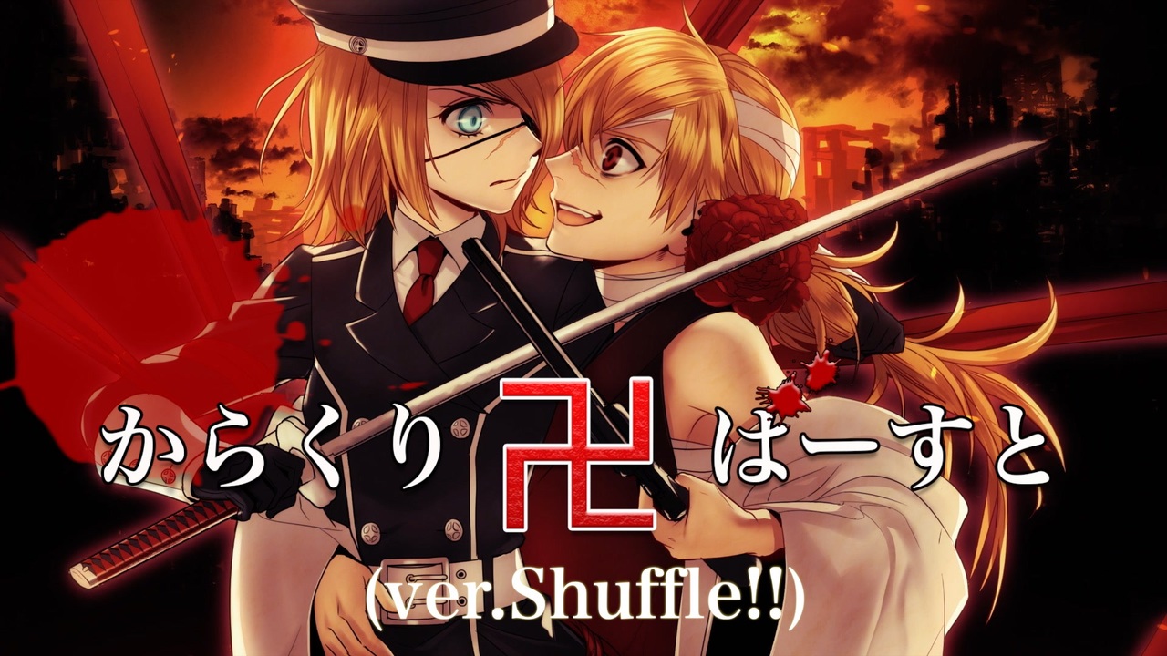 鏡音リン・レン、14周年おめでとうございます。<br>「からくり卍ばーすと」の配役シャッフルバージョンです。<br><br>本家動画はこちら↓<br><a href="https://www.nicovideo.jp/watch/sm13313111" class="watch">sm13313111</a><br><a href="https://www.youtube.com/watch?v=LrVh8ken6D4" target="_blank" rel="noopener nofollow">https://www.youtube.com/watch?v=LrVh8ken6D4</a><br><br>■曲/動画:ひとしずく×やま△【<a href="https://www.nicovideo.jp/mylist/8159174" target="_blank" rel="noopener">mylist/8159174</a>】【<a href="https://www.nicovideo.jp/mylist/16330281" target="_blank" rel="noopener">mylist/16330281</a>】<br>■絵:鈴ノ助【<a href="https://www.nicovideo.jp/mylist/14615344" target="_blank" rel="noopener">mylist/14615344</a>】<br><br>インスト音源:<a href="https://hitoyamamusic.com/" target="_blank" rel="noopener nofollow">https://hitoyamamusic.com/</a><br>