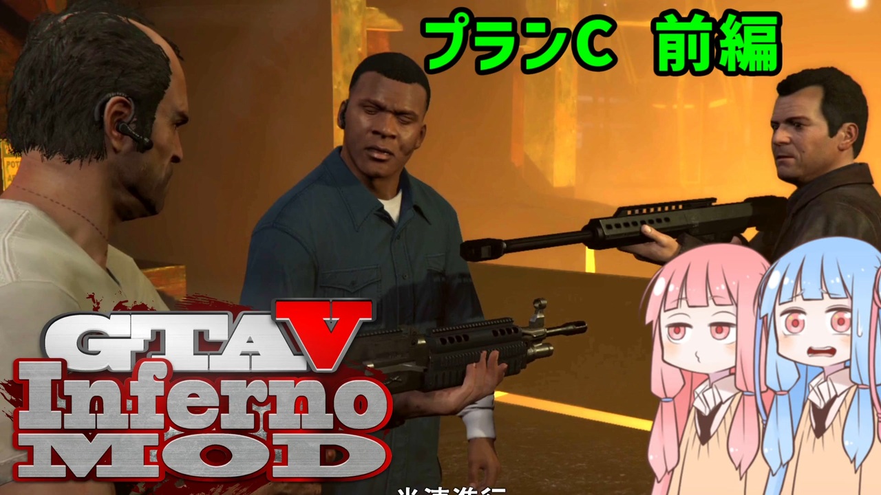 どうも、JACK(将軍)です。<br>今回も、PC版「Grand Theft Auto V」のインフェルノMODで遊んでいきます。<br>最後のミッションで、フランクリンは誰も裏切ることはせず、全員で協力して悩みの種を全て潰す「プランC」を実行します。<br>ミッション自体が長いので、今回は前編ということで鋳物工場戦まで。<br><br>今回は、録画時間が長くなるので、なんだかんだフリーズしまくったのが厳しかったですね…。<br>まあ、おまけが増えるので、それはそれでいいんですが。<br>なるべく早めに、後編も投稿したいですね…!<br><br>前回の動画にもギフトを贈って頂きました。ありがとうございます!<br>嬉しいけど無くてもいいのよ?<br><br>たくさんコメントしてもらって感謝!ありがとうございます!嬉しいです。<br>広告もいつもありがとうございます!メッセージも読んでます。<br><br><br>動画内で使用してる機能(追加したり減らしたりするかも)<br>・カオスモード(市民が暴徒化)<br>・市民暴走運転(そのまんま)<br>・市民ニトロ(市民の車がニトロで急加速)<br>・空挺市民兵召喚(市民がパラシュート降下してくる)<br>・市民車両強盗(そのまんま)←たまにエラーで発動しない<br>・その他、自動で発動したり任意で使える便利(?)機能<br><br>MOD製作者のとりすーぷ様→<a href="https://www.nicovideo.jp/user/15846296" target="_blank" rel="noopener">user/15846296</a><br><br><span style="color: #ff0000; font-size: 24px;">C:死を覚悟する</span><br><br>可愛い姉妹の立ち絵(<a href="https://seiga.nicovideo.jp/seiga/im5274301" target="_blank" rel="noopener">im5274301</a>):新島秋一様<br>いいね押し忘れ防止ちゃん(<a href="https://seiga.nicovideo.jp/seiga/im10742089" target="_blank" rel="noopener">im10742089</a>):ナカトミ様<br><br> <a href="https://www.nicovideo.jp/watch/sm39779420" class="watch">sm39779420</a>←前 次→<a href="https://www.nicovideo.jp/watch/sm39827940" class="watch">sm39827940</a><br><br>その他のpart1→<a href="https://www.nicovideo.jp/mylist/44911807" target="_blank" rel="noopener">mylist/44911807</a><br>時々生放送してたり→co1632431<br>twitter→<a href="https://twitter.com/jackshougun" target="_blank" rel="noopener nofollow">https://twitter.com/jackshougun</a><br>