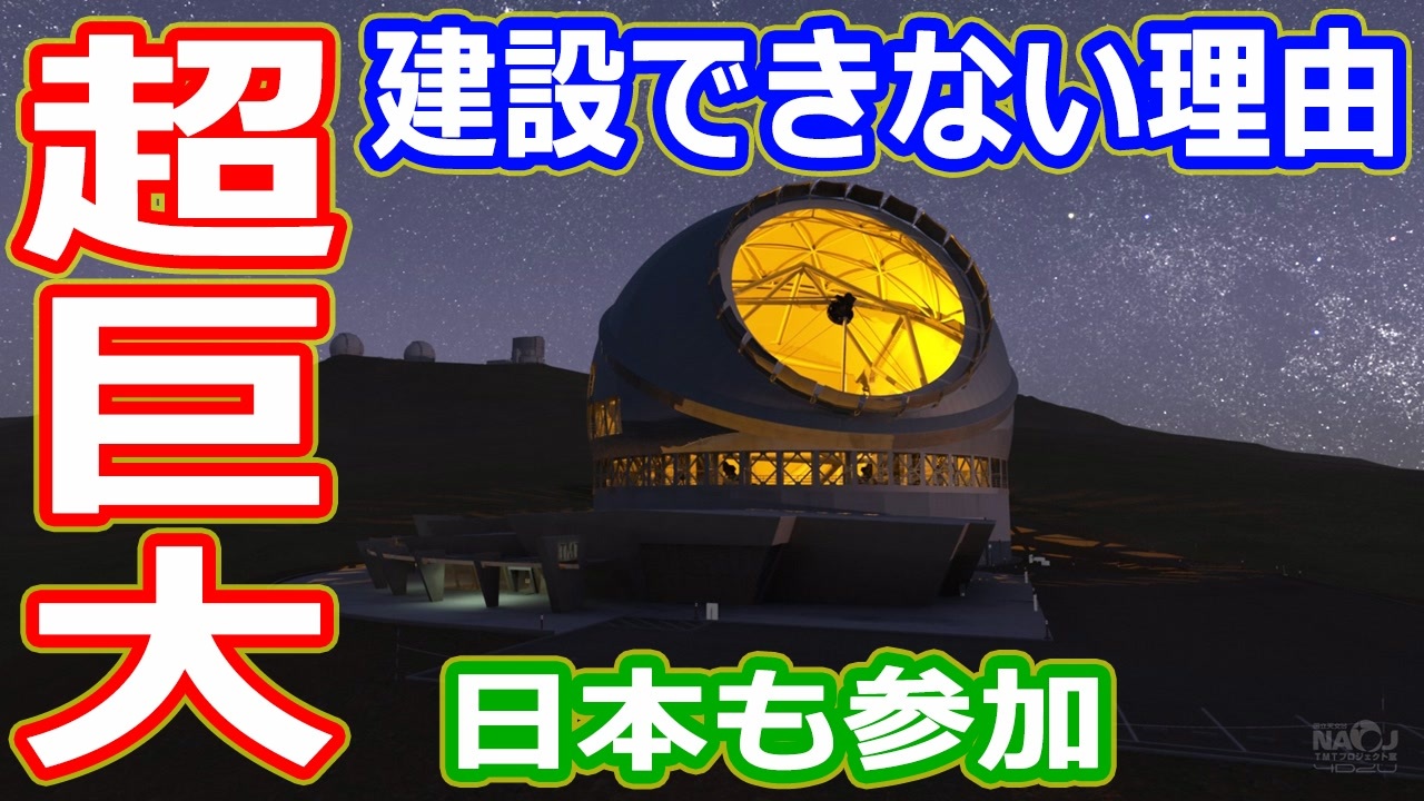 地上にはたくさんの天文台が設置されていて、製造技術の向上によりどんどん大きくなっていってます<br>日本が参加してる30メートル望遠鏡は世界最大の鏡を設置する予定で、ハッブル宇宙望遠鏡を圧倒する性能を持ち、ジェイムズウェッブと匹敵する性能を持っています<br>しかし、一向に建設が進みません<br>いったいなぜなのか地上望遠鏡の実情について解説していきます<br><br>【いちおし宇宙系】<br>・アマゾンリンク<br><a href="https://amzn.to/2S8xjpH" target="_blank" rel="noopener nofollow">https://amzn.to/2S8xjpH</a><br>・天文年鑑 2022年版<br><a href="https://amzn.to/3FQzCB7" target="_blank" rel="noopener nofollow">https://amzn.to/3FQzCB7</a><br>・天文手帳 2022年版<br><a href="https://amzn.to/30XZYlG" target="_blank" rel="noopener nofollow">https://amzn.to/30XZYlG</a><br>・天体観測手帳2022<br><a href="https://amzn.to/3DUHL6R" target="_blank" rel="noopener nofollow">https://amzn.to/3DUHL6R</a><br><br>公平性や中立性を考えてアフィリエイトリンクは控えていましたが、得た収益を次のレビュー書籍や機材代にするために始めました<br>よろしくお願いします<br><br>へえ~と思ったらチャンネル登録と高評価をお願います<br>ツイッターでは、たまに宇宙ネタをつぶやいています<br><br>◆チャンネル登録はこちら<br><a href="http://www.youtube.com/channel/UChOv-TZWg3X4MDjFUF8CfQg?sub_confirmation=1" target="_blank" rel="noopener nofollow">http://www.youtube.com/channel/UChOv-TZWg3X4MDjFUF8CfQg?sub_confirmation=1</a><br>◆サブチャンネル(スカイ三平の雑多推進研究所)<br><a href="http://www.youtube.com/channel/UCpQEOLtOpmXUwslvgi93yQw?sub_confirmation=1" target="_blank" rel="noopener nofollow">http://www.youtube.com/channel/UCpQEOLtOpmXUwslvgi93yQw?sub_confirmation=1</a><br>◆twitterはこちら<br><a href="https://twitter.com/skysanpei" target="_blank" rel="noopener nofollow">https://twitter.com/skysanpei</a>