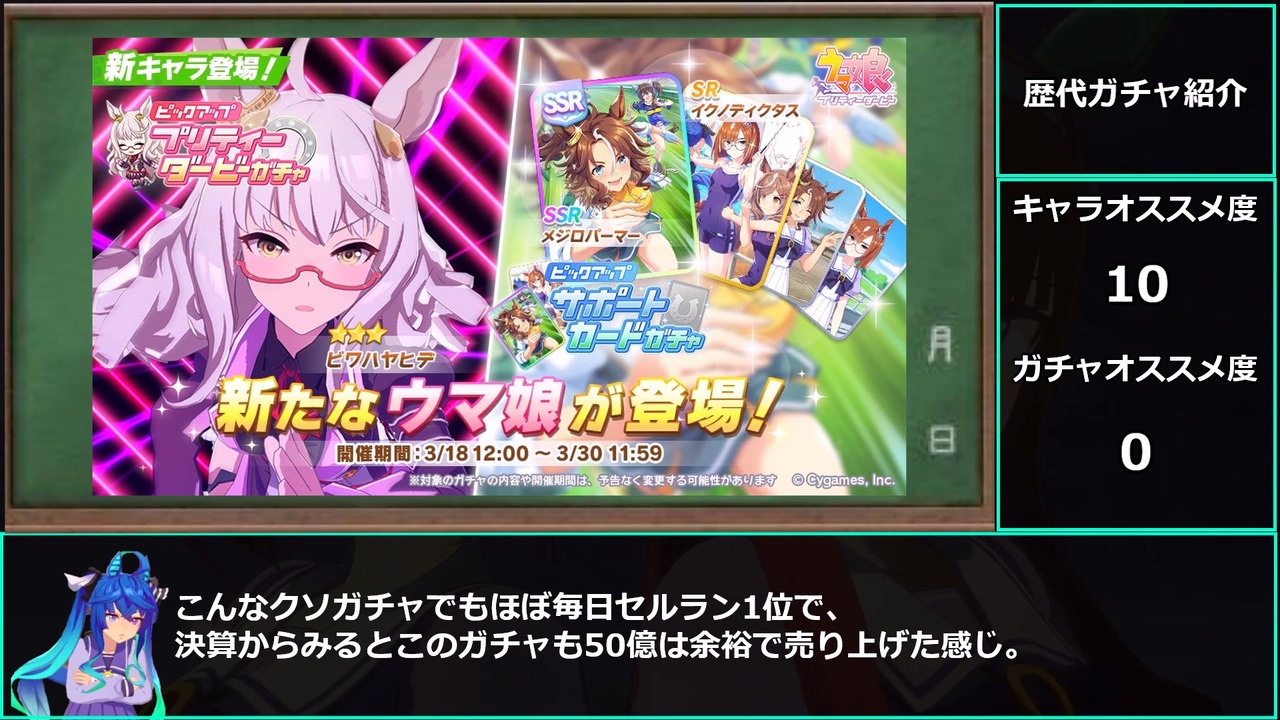 対人戦基礎知識<br>初級編→<a href="https://www.nicovideo.jp/watch/sm39432258" class="watch">sm39432258</a><br>中級編→<a href="https://www.nicovideo.jp/watch/sm39432514" class="watch">sm39432514</a><br>スキル編→<a href="https://www.nicovideo.jp/watch/sm39433182" class="watch">sm39433182</a><br>スキルランキング編→<a href="https://www.nicovideo.jp/watch/sm39407156" class="watch">sm39407156</a><br>加速について→<a href="https://www.nicovideo.jp/watch/sm39583007" class="watch">sm39583007</a><br>コース別加速スキルランキング→<a href="https://www.nicovideo.jp/watch/sm39774678" class="watch">sm39774678</a><br><br>ツイッターも始めたのでよろしくなす<br><a href="https://twitter.com/umamusumetama" target="_blank" rel="noopener nofollow">https://twitter.com/umamusumetama</a><br><br>↓にあるシリーズから過去動画みれるぞ。<br>もうマイリスの時代じゃないんだ。悔しいけど仕方ないんだ。<br>