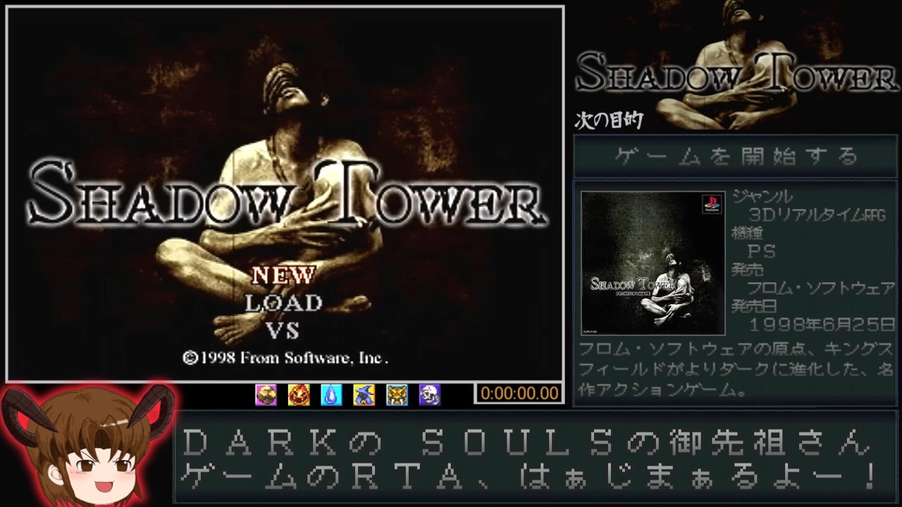 初投稿です。またまたまたフロム・ソフトウェアがお送りするゲームのRTAです。フロムのデビュー作キングスフィールドをよりダークでシビアした感じの作品となっております。<br><br><span style="color: #4d5156;">レギュレーションは、世界記録の方の動画を参考にした</span>Any%で、操作可能になった瞬間から、ラスボスを撃破するまでのタイムを計測してます<span style="color: #4d5156;">。ただ文字で書かれていなかったので、あくまでも推測です。多分あってるとは思いますが。<br>プレイ環境は、PS2の</span>90000型と通常の<span style="color: #4d5156;">コントローラーで、高速読み込みを使用した実機プレイです。</span><br><br>例によって難解な作品ですので解説に全力を注ぎたかったのですが、本作はシステム面も中々難解なので、ストーリー解説よりそちらを優先させていただきました。<br><br>録画機器の不具合のせいか、一部映像の乱れや音ズレ等がありますがご容赦ください。<br><br><たくさんのご視聴・宣伝ありがとうございました。Part2ですが、宣言通り年内には完成させました。><br><br>次<a href="https://www.nicovideo.jp/watch/sm39967945" class="watch">sm39967945</a> <a href="https://www.nicovideo.jp/mylist/55290772" target="_blank" rel="noopener">mylist/55290772</a><br><br><br><br>