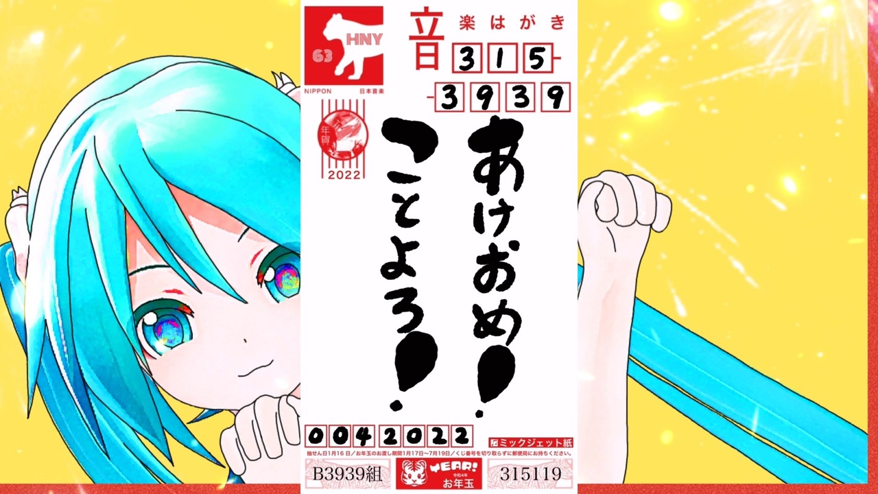 去年のあけおめsong→<a href="https://www.nicovideo.jp/watch/sm38050199" class="watch">sm38050199</a><br><br>あけましておめでとうございます!<br>今年もよろしくお願いします!<br><br>毎年1月1日くらいは、ハッピーな綺麗事を歌っていこうと思っています!<br><br>最新情報はTwitterで更新していきますので、フォローよろしくお願いします。<br>→<a href="https://twitter.com/_sanichigo" target="_blank" rel="noopener nofollow">https://twitter.com/_sanichigo</a><br>--- - -----<br>VOCALOID original song<br>No.119<br><br>Title:あけおめ!ことよろ<br>Singer:Hatsune Miku<br><br>Lyric:<br>君と笑っていけたらいい<br>君と今日から始まる寅年を<br>ずっと笑っていたいな<br>願いを今この歌に乗せて<br><br>綺麗事だと分かってるけど<br>せめて今日は"世界中仲良し"ね<br>まぁまぁ爪を立てず<br>新年を祝して<br>あけおめ!ことよろ!<br><br><br>正直、丑年はどうでした?<br>正直、僕はいまいちでした<br>なんか上手くいかない<br>あんま曲も作れなかったし<br><br>まぁいいや、君の話も頂戴<br>あと母さん、お雑煮も頂戴<br>やっぱこれだよな<br>あたたかな何かが流れる<br><br>こたつの真ん中で丸くなる猫<br>乾いた空に響く羽根つきの音<br>他愛もないことが、どうしようもないほど<br>堪らなく愛しいんだ<br><br>君と笑っていけたらいい<br>君と今日から始まる寅年を<br>ずっと笑っていたいな<br>願いを今この歌に乗せて<br><br>綺麗事だと分かってるけど<br>せめて今日は"世界中仲良し"ね<br>さぁさぁ、お手を拝借<br>前途を祝して<br>あけおめ!ことよろ!<br><br>例えば人様(かみさま)が意地悪で<br>願いは叶わず噛みつき合っちゃっても<br>僕は最期の瞬間(とき)まで<br>今日食べたお雑煮の味とか<br>君の話とか<br>小さな幸福も忘れずに<br>死ぬまで生きていたい<br><br>君と笑っていけたらいいのに<br>そう上手くはいかない<br>分かってる、ちゃんと分かってるけど<br>楽しかった思い出や<br>大切な言葉をこの胸に<br>そう上手くはいかない世界へ<br>僕らでまた挑んでいこうね!<br>「きっと上手くいく」って<br>笑って新年あけおめ!ことよろ!<br><br>Next song:【MV】イリアス / VOCALOID Fukase(Remix) <a href="https://www.nicovideo.jp/watch/sm39921492" class="watch">sm39921492</a><br>Previous song:足りない。 / 結月ゆかり <a href="https://www.nicovideo.jp/watch/sm39817526" class="watch">sm39817526</a><br /><br>Follow 315<br>・YouTube:<a href="https://www.youtube.com/channel/UCNEAa-t8CPs_M8FxeElw0nA/featured" target="_blank" rel="noopener nofollow">https://www.youtube.com/channel/UCNEAa-t8CPs_M8FxeElw0nA/featured</a><br>・niconico:<a href="https://www.nicovideo.jp/user/38314796/top" target="_blank" rel="noopener nofollow">https://www.nicovideo.jp/user/38314796/top</a><br>・bilibili:<a href="https://space.bilibili.com/456440314" target="_blank" rel="noopener nofollow">https://space.bilibili.com/456440314</a><br>・Twitter:<a href="https://twitter.com/_sanichigo" target="_blank" rel="noopener nofollow">https://twitter.com/_sanichigo</a><br>・Instagram:<a href="https://www.instagram.com/315.sanichigo/" target="_blank" rel="noopener nofollow">https://www.instagram.com/315.sanichigo/</a><br>・TikTok:<a href="https://www.tiktok.com/@315.sanichigo?" target="_blank" rel="noopener nofollow">https://www.tiktok.com/@315.sanichigo?</a>