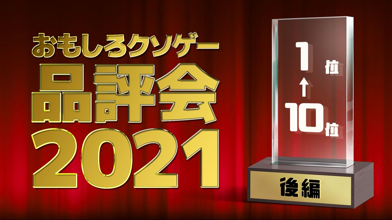 ~2021年度クソゲー実況動画のまとめ企画~<br><br>視聴者投票により、今年度の最も面白いクソゲーが選出されました。<br>この動画では、その結果発表を行います。<br><br>前→<a href="https://www.nicovideo.jp/watch/sm39837694" class="watch">sm39837694</a><br><br>2021年度大賞→<a href="https://www.nicovideo.jp/watch/sm38524865" class="watch">sm38524865</a><br>2020年度大賞→<a href="https://www.nicovideo.jp/watch/sm37458178" class="watch">sm37458178</a><br>2018年度大賞→<a href="https://www.nicovideo.jp/watch/sm32681176" class="watch">sm32681176</a><br>2017年度大賞→<a href="https://www.nicovideo.jp/watch/sm31822724" class="watch">sm31822724</a><br>2016年度大賞→<a href="https://www.nicovideo.jp/watch/sm28797872" class="watch">sm28797872</a><br><br>10位→<a href="https://www.nicovideo.jp/watch/sm39097025" class="watch">sm39097025</a><br>9位→<a href="https://www.nicovideo.jp/watch/sm38668810" class="watch">sm38668810</a><br>8位→<a href="https://www.nicovideo.jp/watch/sm38631026" class="watch">sm38631026</a><br>7位→<a href="https://www.nicovideo.jp/watch/sm39521915" class="watch">sm39521915</a><br>6位→<a href="https://www.nicovideo.jp/watch/sm39246401" class="watch">sm39246401</a><br>5位→<a href="https://www.nicovideo.jp/watch/sm39673543" class="watch">sm39673543</a><br>4位→<a href="https://www.nicovideo.jp/watch/sm38735361" class="watch">sm38735361</a><br>3位→<a href="https://www.nicovideo.jp/watch/sm38094074" class="watch">sm38094074</a><br>2位→<a href="https://www.nicovideo.jp/watch/sm38280514" class="watch">sm38280514</a><br><br><br><br>《 支援&宣伝&応援してくださる方に感謝 m(_ _)m 》<br><br><br><br>おもしろクソゲー品評会大賞作品→ <a href="https://www.nicovideo.jp/mylist/70550813" target="_blank" rel="noopener">mylist/70550813</a><br>おもしろクソゲー(今年度)→ <a href="https://www.nicovideo.jp/mylist/72278120" target="_blank" rel="noopener">mylist/72278120</a><br><br><br>Twitter◆<a href="https://twitter.com/cut_uma_3rd/" target="_blank" rel="noopener nofollow">https://twitter.com/cut_uma_3rd/</a><br>Fanbox◆<a href="https://cut-uma-3rd.fanbox.cc/" target="_blank" rel="noopener nofollow">https://cut-uma-3rd.fanbox.cc/</a><br>※動画の裏話が聞けるラジオ、支援者限定Discodeなどの特典がありまぁす