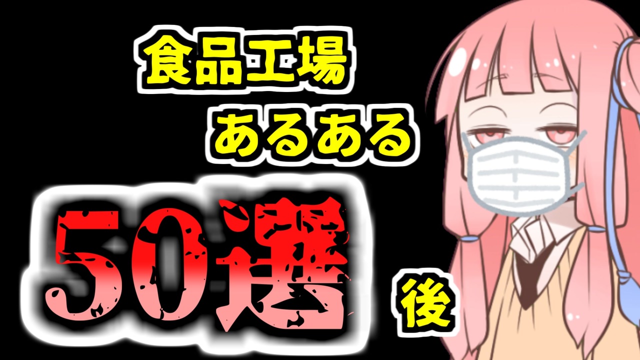 あけましておめでとうございます。<br><br>食品工場は普通の工場と色々違うのでイメージがわきづらいと思います。<br><br>そんな食品工場のあるあるを50個集めてみました。<br><br>今回はその後編。<br><br>新しい年に仕事を変えたい方の、一助になれば。<br><br><a href="https://www.nicovideo.jp/mylist/73198447" target="_blank" rel="noopener">mylist/73198447</a><br><br><br><br>前編→【VOICEROID解説】コンビニ食品工場あるある50連発・前(<a href="https://www.nicovideo.jp/watch/sm38915780" class="watch">sm38915780</a>)<br><br><br>いいねコメにて、51個目のあるある<br><br><br>「うぽつ」「おつ」「なるほど」にフィルター仕込んでみました。<br>かんたんコメントでどうぞ。<br>※スマホだと反映されないようです<br><br><br>今回のブログ記事:<a href="https://acerolalog.com/koujyou-aruaru/" target="_blank" rel="noopener nofollow">https://acerolalog.com/koujyou-aruaru/</a><br><br><br><br><br /><span style="color: #ff0000; font-size: 24px;"><strong>釧路を紹介するブログ始めました</strong></span>:<a href="https://946de2100.com" target="_blank" rel="noopener nofollow">https://946de2100.com</a><br><br><span style="color: #ff0000; font-size: 16px;"><strong>●おススメ動画:</strong></span><span style="color: #ff0000; font-size: 18px;"><strong>【歴史解説】かつて 釧路を支配していたのは佐賀だった ~釧路元町の始まりと佐野孫右衛門の盛衰~</strong></span><br><br><a href="https://www.nicovideo.jp/watch/sm44267722" class="watch">sm44267722</a><br><br><br><span style="color: #ff0000; font-size: 18px;"><strong>●YouTubeチャンネルも登録よろしくお願いします</strong></span><br><strong>釧路チャンネル <a href="https://www.youtube.com/@znd-kaisetu" target="_blank" rel="noopener nofollow">https://www.youtube.com/@znd-kaisetu</a></strong><br>恋結シラリカソロチャンネル <a href="https://www.youtube.com/@enmusubi-shirarika" target="_blank" rel="noopener nofollow">https://www.youtube.com/@enmusubi-shirarika</a><br><br><br>ほしいものリスト <a href="https://www.amazon.jp/hz/wishlist/ls/2OUUB1JQSRUWG?ref_=wl_share" target="_blank" rel="noopener nofollow">https://www.amazon.jp/hz/wishlist/ls/2OUUB1JQSRUWG?ref_=wl_share</a><br>クリエイターサポート<a href="https://creator-support.nicovideo.jp/registration/116665199" target="_blank" rel="noopener nofollow">https://creator-support.nicovideo.jp/registration/116665199</a>