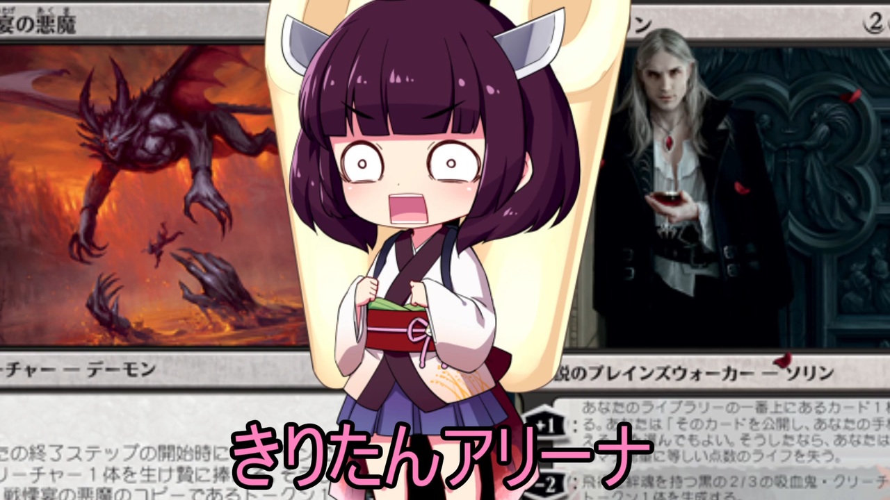 なんか気がついたら投コメ文字数制限かなり楽になってますね。という事でYouTubeやTwitterリンクも書き書き<br><br>【使用デッキ】<br>黒緑宝物戦慄宴の悪魔デッキ<br><br>【アリーナ公式】<br><a href="https://magic.wizards.com/en/mtgarena" target="_blank" rel="noopener nofollow">https://magic.wizards.com/en/mtgarena</a><br>【配信】<br><a href="https://www.twitch.tv/kiritanex" target="_blank" rel="noopener nofollow">https://www.twitch.tv/kiritanex</a><br>【YouTube】<br><a href="https://www.youtube.com/channel/UCGf_tUZ2hv7KGcroveuN64w" target="_blank" rel="noopener nofollow">https://www.youtube.com/channel/UCGf_tUZ2hv7KGcroveuN64w</a><br>【Twitter】(ほぼ投稿・配信告知)<br><a href="https://twitter.com/x0KywD9AzFSmDp2" target="_blank" rel="noopener nofollow">https://twitter.com/x0KywD9AzFSmDp2</a><br><br>【前回の広告者様動画】<br>ソンチョー様「4人でMTGAやりましょ!」<a href="https://www.nicovideo.jp/mylist/64931307" target="_blank" rel="noopener">mylist/64931307</a><br>あいあい様:「【MOレガシー】太正の白スタックスで帝都防衛」<a href="https://www.nicovideo.jp/mylist/70238207" target="_blank" rel="noopener">mylist/70238207</a><br>林原めぐみ好きのおっちゃん様:「ゆかマキMTG実況」<a href="https://www.nicovideo.jp/series/155646" target="_blank" rel="noopener">series/155646</a><br>ロストドール様:「ロストドールのアリーナ対戦録」<a href="https://www.nicovideo.jp/series/242181" target="_blank" rel="noopener">series/242181</a><br>BlueSky様:「【MTGA】ドラフトで遊ぶ」<a href="https://www.nicovideo.jp/mylist/67869251" target="_blank" rel="noopener">mylist/67869251</a><br>あきみず様:「イタコマジック」<a href="https://www.nicovideo.jp/series/240030" target="_blank" rel="noopener">series/240030</a><br>ものまねうさぎ様:「初心者でもモダンがしたい!」<a href="https://www.nicovideo.jp/watch/sm32508742" class="watch">sm32508742</a><br>Luin様:「PWあかりのアリーナ対戦録」<a href="https://www.nicovideo.jp/mylist/66293742" target="_blank" rel="noopener">mylist/66293742</a><br>TKY様:「弦巻 The Gathering」<a href="https://www.nicovideo.jp/series/173355" target="_blank" rel="noopener">series/173355</a><br>TEPIA様:「紲星あかりはライブラリーをめくりたい」<a href="https://www.nicovideo.jp/watch/sm35229450" class="watch">sm35229450</a><br>稲尾様:「とにかくタフネスで殴り抜ける。」<a href="https://www.nicovideo.jp/mylist/66067276" target="_blank" rel="noopener">mylist/66067276</a><br>AHE様:「MTG一人対戦」<a href="https://www.nicovideo.jp/mylist/54219502" target="_blank" rel="noopener">mylist/54219502</a><br>白ウイスキー様:「アリーナのアは茜ちゃんのア」<a href="https://www.nicovideo.jp/mylist/69289902" target="_blank" rel="noopener">mylist/69289902</a><br>レインコート様:「赤くて速いMTG」<a href="https://www.nicovideo.jp/series/189753" target="_blank" rel="noopener">series/189753</a><br>ラーメン王様:「結月ゆかりのミラクル解説ラジオ」<a href="https://www.nicovideo.jp/mylist/62359037" target="_blank" rel="noopener">mylist/62359037</a><br>ひらりん様:「MTGアリーナ初心者解説」<a href="https://www.nicovideo.jp/series/287415" target="_blank" rel="noopener">series/287415</a><br><br><a href="https://www.nicovideo.jp/mylist/63851869" target="_blank" rel="noopener">mylist/63851869</a> 前:<a href="https://www.nicovideo.jp/watch/sm39834961" class="watch">sm39834961</a> 次:未定<br><br>【別動画】<br>LOL(休止):<a href="https://www.nicovideo.jp/mylist/58624144" target="_blank" rel="noopener">mylist/58624144</a><br>ロックマン(ウナちゃん):<a href="https://www.nicovideo.jp/mylist/72383291" target="_blank" rel="noopener">mylist/72383291</a><br>