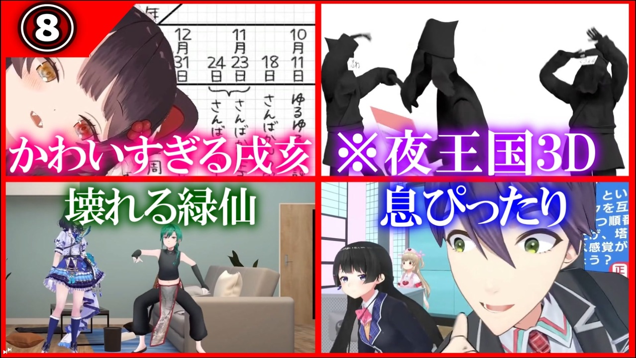 みんなが一番好きだったシーンを教えてね!<br><br>元動画<br><br>【かわいい】『あれ、私達、入れ替わってる〜ッ!?』【3D/相羽ういは/緑仙/にじさんじ】<a href="https://www.youtube.com/watchv=AzsBgeihKUY&list=WL&index=8" target="_blank" rel="noopener nofollow">https://www.youtube.com/watchv=AzsBgeihKUY&list=WL&index=8</a><br><br>【#夜王国二周年】3D黒子夜王国【にじさんじ/グウェル・オス・ガール/不破湊/白雪巴】<br><a href="https://www.youtube.com/watch?v=p5n12eJw6WM&list=WL&index=5" target="_blank" rel="noopener nofollow">https://www.youtube.com/watch?v=p5n12eJw6WM&list=WL&index=5</a><br><br>【#さんばか1周年3D】3Dで集合!さんばか1周年記念!<br><a href="https://www.youtube.com/watch?v=Qrb4gcPjLS4&list=WL&index=13" target="_blank" rel="noopener nofollow">https://www.youtube.com/watch?v=Qrb4gcPjLS4&list=WL&index=13</a><br><br>【#なとリゼクイズ大会】名取&リゼのたのしいたのしいクイズ大会<br><a href="https://www.youtube.com/watch?v=SHtggEEjJCM&list=WL&index=7" target="_blank" rel="noopener nofollow">https://www.youtube.com/watch?v=SHtggEEjJCM&list=WL&index=7</a><br><br>【#まちゅかい3D】いつだって自分が最推しだ!!【にじさんじ/魔使マオ】<br><a href="https://www.youtube.com/watch?v=K6hgZsLGOv8&list=WL&index=14" target="_blank" rel="noopener nofollow">https://www.youtube.com/watch?v=K6hgZsLGOv8&list=WL&index=14</a>