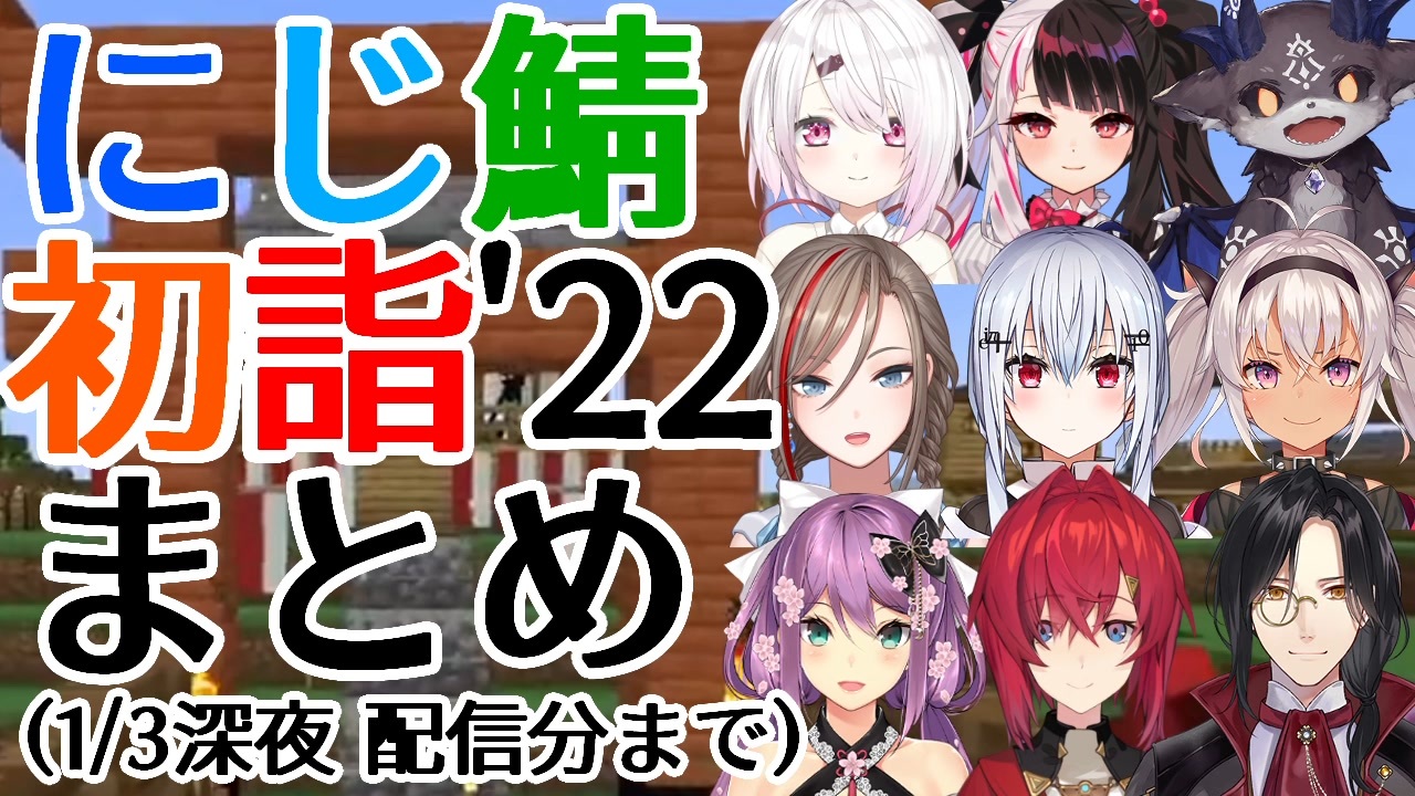 偶然の出会い発生しがち・おみくじガチャ溺れがち・絵馬ひどくなりがち<br>な初詣特集。みなさんが素敵な一年になりますように!<br><br>※1/3深夜配信分まで対象<br><span style="color: #b7b7b7;">※ミスのため再アップロード致しました。</span><br><br><br><u>▼アンジュ・カトリーナ</u><br>【2021年】初酒だ!!今年もよろしくお願いします!!!!【にじさんじ/アンジュ・カトリーナ】<br><a href="https://www.youtube.com/watch?v=Kv-EaVDG4I8" target="_blank" rel="noopener nofollow">https://www.youtube.com/watch?v=Kv-EaVDG4I8</a><br><br><u>▼桜凛月</u><br>【minecarft】初詣行くよーー!!【にじさんじ/桜凛月】<br><a href="https://www.youtube.com/watch?v=aODuO6hURvM" target="_blank" rel="noopener nofollow">https://www.youtube.com/watch?v=aODuO6hURvM</a><br><br><u>▼葉加瀬冬雪</u><br>【Minecraft】初詣行きます【にじさんじ/葉加瀬冬雪 】<br><a href="https://www.youtube.com/watch?v=bIU_tODbQv4" target="_blank" rel="noopener nofollow">https://www.youtube.com/watch?v=bIU_tODbQv4</a><br><br><u>▼椎名唯華</u><br>【minecraft/マインクラフト】にじ鯖に初詣いくぞ~(・ω・)ノ【椎名唯華/にじさんじ】<br><a href="https://www.youtube.com/watch?v=XKbaLEuYE7M" target="_blank" rel="noopener nofollow">https://www.youtube.com/watch?v=XKbaLEuYE7M</a><br><br><u>▼来栖夏芽</u><br>【マイクラ】にじさば神社めぐり!!【 来栖夏芽/にじさんじ】<br><a href="https://www.youtube.com/watch?v=1Cl-un0DBYo" target="_blank" rel="noopener nofollow">https://www.youtube.com/watch?v=1Cl-un0DBYo</a><br><br><u>▼夜見れな</u><br>【マインクラフト/Minecraft】うんち教のみんなでマイクラ初詣行くよ!【夜見れな/にじさんじ】<br><a href="https://www.youtube.com/watch?v=KI01Em0MyT8" target="_blank" rel="noopener nofollow">https://www.youtube.com/watch?v=KI01Em0MyT8</a><br><br><u>▼魔使マオ</u><br>【うんち教】マイクラで初詣いくよ~~~【にじさんじ】<br><a href="https://www.youtube.com/watch?v=rrVBWaJ_IcI" target="_blank" rel="noopener nofollow">https://www.youtube.com/watch?v=rrVBWaJ_IcI</a><br><br><u>▽でびでび・でびる</u><br>【マイクラ】新年うんち参り【夜見れな/魔使マオ/シェリン・バーガンディ/でびでび・でびる/にじさんじ】<br><a href="https://www.youtube.com/watch?v=Itcvk3op_Yo" target="_blank" rel="noopener nofollow">https://www.youtube.com/watch?v=Itcvk3op_Yo</a><br><br><u>▽シェリン・バーガンディ</u><br>【マイクラ】うんち教初詣【シェリン/にじさんじ】<br><a href="https://www.youtube.com/watch?v=Vvg_y3zPDoo" target="_blank" rel="noopener nofollow">https://www.youtube.com/watch?v=Vvg_y3zPDoo</a>