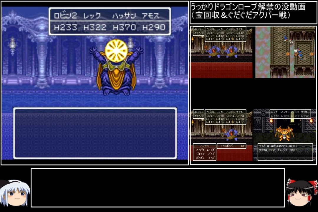 2022年初の動画投稿! 年末年始は色々な動画が上がっていたので、稼ぎ作業のお供には最適で結構な撮り溜めができました。<br>先日のニコニコニュースの記事をゲームやりこみ学会のTwitterアカウントが見てくださったらしく嬉しい今日この頃。2021年がゾゾゲルで終わり、2022年はゾゾゲルで始まる本シリーズですが、最後までお付き合いいただけると嬉しいです!<br><br>前→<a href="https://www.nicovideo.jp/watch/sm39834453" class="watch">sm39834453</a> 次→<a href="https://www.nicovideo.jp/watch/sm39896663" class="watch">sm39896663</a><br><br>YouTube版→<a href="https://youtu.be/4li1UmENW14" target="_blank" rel="noopener nofollow">https://youtu.be/4li1UmENW14</a><br><br><br>※動画の大きさが変わる方は、お手数ですが設定→画質を自動から〇pに変えると解決します。<br>※一部機種は互換機を使用してのプレイとなります。<br><br>縛りルール(不明点はシリーズのQ&Aを参照)<br>①使った武器・防具・装飾品・道具・呪文・特技・一部特殊施設(メダル王・カジノ・移民の町)・職業(3,6,7)・仲間モンスター(4,5,6,8+7の職業)は次以降のシリーズで使用禁止。<br>(NPCキャラが使用した装備や呪文を含む。売却及び錬金素材としても使用扱い)<br><br>②裏技・バグ技の禁止。<br><br>③逃走禁止&戦闘終了時は全員生存。<br><br>④レベルを上げ過ぎない。<br>ダンジョンやボスは公式ガイドブックに記載されたレベル+3まで。<br>ラスボスは全ての呪文を習得するレベル+3程度までに収める。<br><br>⑤裏ボスも規定回数、規定ターン以内に倒す。<br>(6の裏ダンジョン突入時のみ、条件を満たすため①の職業を解禁)<br><br>(おまけ)<br>宝は可能なものに限り全回収。<br>5と6は同一モンスターの仲間不可。<br>回避可能なボスも全て倒す。<br><br><br>この動画で利用している株式会社スクウェア・エニックスを代表とする共同著作者が権利を所有する著作物及びスギヤマ工房有限会社が権利を所有する楽曲の転載・配布は禁止いたします。<br>(C) ARMOR PROJECT/BIRD STUDIO/SQUARE ENIX All Rights Reserved.<br>(C) SUGIYAMA KOBO (P) SUGIYAMA KOBO<br><br>AquesTalk2ライセンスID:AQTK2WINUSR23122185<br /><br><br>❤いいねを押していただけるとモチベーションと投稿速度が上がるので宜しくお願い致します!<br><br>作者ツイッター→ <a href="https://twitter.com/nig0117" target="_blank" rel="noopener nofollow">https://twitter.com/nig0117</a><br>PIXIV FANBOX→ <a href="https://sutanokeiji.fanbox.cc/" target="_blank" rel="noopener nofollow">https://sutanokeiji.fanbox.cc/</a><br><br>( 以前はWEB小説書いてました→ <a href="https://kakuyomu.jp/works/1177354054884910267" target="_blank" rel="noopener nofollow">https://kakuyomu.jp/works/1177354054884910267</a> )