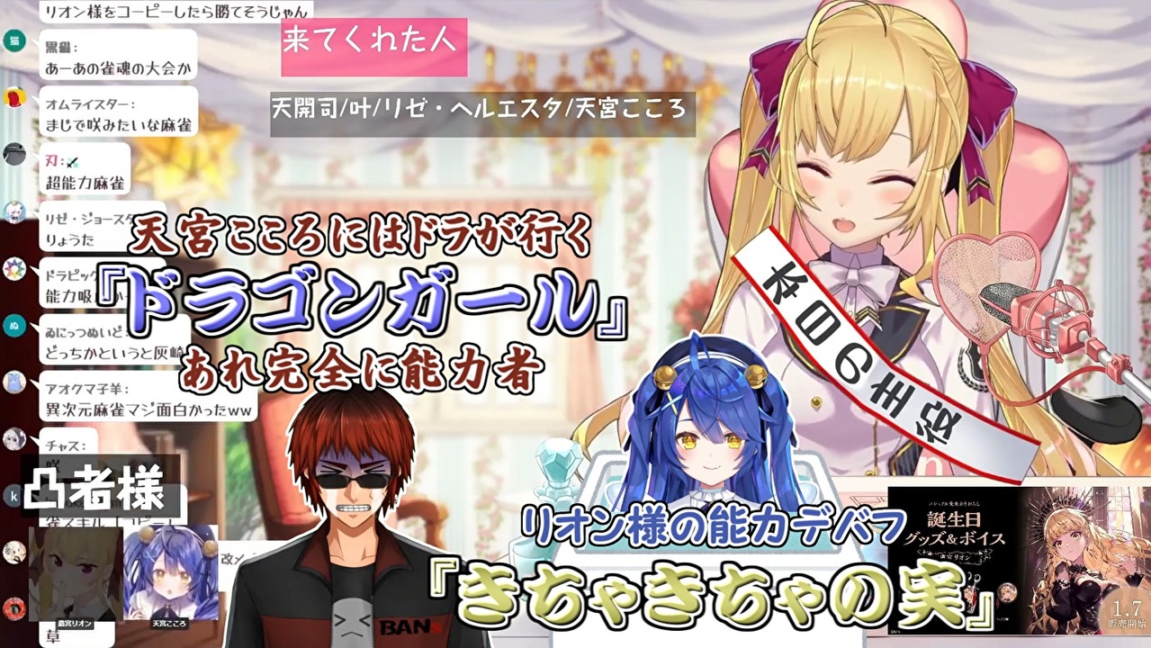 お嬢誕生日おめでとうございます!<br>これ今日の麻雀大会完全に能力バトルものになっちゃうなw<br><br>本家参考動画<br>・鷹宮リオン<br>【凸待ち】#鷹宮誕生日2022 【にじさんじ/鷹宮リオン】<br><a href="https://youtu.be/8YF3IpTdXp0" target="_blank" rel="noopener nofollow">https://youtu.be/8YF3IpTdXp0</a><br>・天宮こころ<br>˗ˋˏ 雀魂 ˎˊ˗ ルイス・・・・?と大会に向けて特訓!( 天宮こころ/ルイス・キャミー )#雀魂2周年大大感謝杯<br><a href="https://youtu.be/HDguiiDWqxY" target="_blank" rel="noopener nofollow">https://youtu.be/HDguiiDWqxY</a><br><br>参考元チャンネル&Twitter<br>・鷹宮リオン<br><a href="https://www.youtube.com/channel/UCV5ZZlLjk5MKGg3L0n0vbzw" target="_blank" rel="noopener nofollow">https://www.youtube.com/channel/UCV5ZZlLjk5MKGg3L0n0vbzw</a><br><a href="https://twitter.com/TakamiyaRion" target="_blank" rel="noopener nofollow">https://twitter.com/TakamiyaRion</a><br>・天開司<br><a href="https://www.youtube.com/channel/UCZYyhgoV314CM14zBD6vd4A" target="_blank" rel="noopener nofollow">https://www.youtube.com/channel/UCZYyhgoV314CM14zBD6vd4A</a><br><a href="https://twitter.com/tenkaitukasa" target="_blank" rel="noopener nofollow">https://twitter.com/tenkaitukasa</a><br>・天宮こころ<br><a href="https://www.youtube.com/channel/UCkIimWZ9gBJRamKF0rmPU8w" target="_blank" rel="noopener nofollow">https://www.youtube.com/channel/UCkIimWZ9gBJRamKF0rmPU8w</a><br><a href="https://twitter.com/amamiya_kokoro" target="_blank" rel="noopener nofollow">https://twitter.com/amamiya_kokoro</a><br>・ルイス・キャミー<br><a href="https://www.youtube.com/channel/UCb6ObE-XGCctO3WrjRZC-cw" target="_blank" rel="noopener nofollow">https://www.youtube.com/channel/UCb6ObE-XGCctO3WrjRZC-cw</a><br><a href="https://twitter.com/Luis_Cammy" target="_blank" rel="noopener nofollow">https://twitter.com/Luis_Cammy</a><br><br>ニコニコのダイコンマンリスト<br>「バーチャルYouTuberシリーズ」↓<br><a href="https://www.nicovideo.jp/mylist/62551838" target="_blank" rel="noopener">mylist/62551838</a><br>「バーチャルYouTuberシリーズ2」↓<br><a href="https://www.nicovideo.jp/mylist/67858437" target="_blank" rel="noopener">mylist/67858437</a><br>「バーチャルYouTuberシリーズ3」↓<br><a href="https://www.nicovideo.jp/mylist/71340675" target="_blank" rel="noopener">mylist/71340675</a><br><br>ダイコンマンのTwitter<br><a href="https://twitter.com/Daikon_Man_V" target="_blank" rel="noopener nofollow">https://twitter.com/Daikon_Man_V</a>