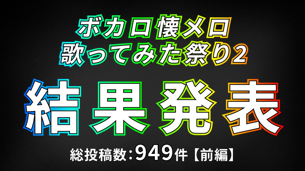 12/12に開催された「ボカロ懐メロ歌ってみた祭り2」の結果発表動画です!<br><br>総投稿数は949件となりました。<br>沢山のご参加・ご協力ありがとうございました!<br><br>結果発表は前編と後編の二部構成になっています。<br><br>【前編】ランキング1~3位・優良賞の発表 <a href="https://www.nicovideo.jp/watch/sm39870564" class="watch">sm39870564</a><br>【後編】特別賞・優秀賞・その他受賞者の発表 <a href="https://www.nicovideo.jp/watch/sm39872228" class="watch">sm39872228</a><br><br>次回はニコニコ動画16周年となる、2022年12月11日~18日を予定しています!<br><br>■ボカロ懐メロ歌ってみた祭り2(特設サイト)<br><a href="https://www.mixreq-site.com/festival2" target="_blank" rel="noopener nofollow">https://www.mixreq-site.com/festival2</a><br>※ 結果発表のまとめを記載します。<br><br>《受賞作品》<a href="https://www.nicovideo.jp/mylist/72448667" target="_blank" rel="noopener">mylist/72448667</a><br><br>《参加ゲスト》<br>ぱなまん <a href="https://www.nicovideo.jp/watch/sm39745851" class="watch">sm39745851</a> <a href="https://twitter.com/pana_pana_man" target="_blank" rel="noopener nofollow">https://twitter.com/pana_pana_man</a><br>ヲタみん <a href="https://www.nicovideo.jp/watch/sm39745101" class="watch">sm39745101</a> <a href="https://twitter.com/wotamin25" target="_blank" rel="noopener nofollow">https://twitter.com/wotamin25</a><br>りょーくん <a href="https://www.nicovideo.jp/watch/sm39745653" class="watch">sm39745653</a> <a href="https://twitter.com/RYOTA_Equal" target="_blank" rel="noopener nofollow">https://twitter.com/RYOTA_Equal</a><br>赤ティン <a href="https://www.nicovideo.jp/watch/sm39749990" class="watch">sm39749990</a> <a href="https://twitter.com/akatibitintin" target="_blank" rel="noopener nofollow">https://twitter.com/akatibitintin</a><br><br>《協賛》<br>Plugin Boutique:<a href="https://bit.ly/33btWU8" target="_blank" rel="noopener nofollow">https://bit.ly/33btWU8</a><br><br>《主催・運営》<br>やっち <a href="https://twitter.com/Yc_nm0326" target="_blank" rel="noopener nofollow">https://twitter.com/Yc_nm0326</a>