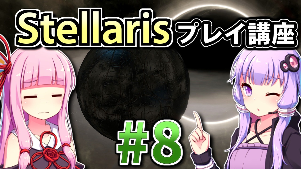 宇宙が舞台の戦略SLG、Stellaris (ステラリス) の遊び方・攻略を初心者向けに解説するプレイ動画。<br>第8回は防衛戦の戦い方や、政策について<br><br>前 : 第7話 (<a href="https://www.nicovideo.jp/watch/sm39771471" class="watch">sm39771471</a>) <-> 次 : (<a href="https://www.nicovideo.jp/watch/sm39995588" class="watch">sm39995588</a>)<br>このシリーズのリンク: <a href="https://www.nicovideo.jp/series/263583" target="_blank" rel="noopener">series/263583</a><br><br>■ プレイ環境 : Stellaris Ver 3.2.2<br>■ 使用MOD:<br> ・Stellaris 日本語化MOD : <a href="https://steamcommunity.com/sharedfiles/filedetails/?id=792636965" target="_blank" rel="noopener nofollow">https://steamcommunity.com/sharedfiles/filedetails/?id=792636965</a> (日本語で読める)<br> ・結月ゆかりボイスMOD : <a href="https://steamcommunity.com/sharedfiles/filedetails/?id=2521697832" target="_blank" rel="noopener nofollow">https://steamcommunity.com/sharedfiles/filedetails/?id=2521697832</a> (耳が幸せになる) <br> ・Cinematic Camera : <a href="https://steamcommunity.com/sharedfiles/filedetails/?id=703156866" target="_blank" rel="noopener nofollow">https://steamcommunity.com/sharedfiles/filedetails/?id=703156866</a> (動画映えする撮影ができる)<br> ・Amazing Space Battles + Shorter Battles : <a href="https://steamcommunity.com/sharedfiles/filedetails/?id=1878473679" target="_blank" rel="noopener nofollow">https://steamcommunity.com/sharedfiles/filedetails/?id=1878473679</a> (戦闘がキレイに)<br><br><br />HoI4プレイ講座 → (<a href="https://www.nicovideo.jp/mylist/62136132" target="_blank" rel="noopener">mylist/62136132</a>)<br>EU4プレイ講座→(<a href="https://www.nicovideo.jp/mylist/61049948" target="_blank" rel="noopener">mylist/61049948</a>)<br>CK3プレイ講座→(<a href="https://www.nicovideo.jp/series/191974" target="_blank" rel="noopener">series/191974</a>)<br>Stellarisプレイ講座→(<a href="https://www.nicovideo.jp/series/263583" target="_blank" rel="noopener">series/263583</a>)<br>Vic3プレイ講座→(<a href="https://www.nicovideo.jp/series/364690" target="_blank" rel="noopener">series/364690</a>)<br>赤いシムシティ実況動画 → (<a href="https://www.nicovideo.jp/series/8074" target="_blank" rel="noopener">series/8074</a>)<br>太閤立志伝5 DX実況動画→ (<a href="https://www.nicovideo.jp/series/323444" target="_blank" rel="noopener">series/323444</a>)<br>信長の野望 小田家プレイ動画 → (<a href="https://www.nicovideo.jp/series/353641" target="_blank" rel="noopener">series/353641</a>)<br>紲星あかりF1参戦記→(<a href="https://www.nicovideo.jp/series/222744" target="_blank" rel="noopener">series/222744</a>)<br>あかねとあかりのソビエト国境警備隊!→ (<a href="https://www.nicovideo.jp/series/394983" target="_blank" rel="noopener">series/394983</a>)<br>Cities: Skylines2都市開発プレイ動画 → (<a href="https://www.nicovideo.jp/series/436779" target="_blank" rel="noopener">series/436779</a>)<br>Manor Lords村作りプレイ動画 → (<a href="https://www.nicovideo.jp/series/468306" target="_blank" rel="noopener">series/468306</a>)<br>全動画投稿リスト (<a href="https://www.nicovideo.jp/user/77964272" target="_blank" rel="noopener">user/77964272</a>)