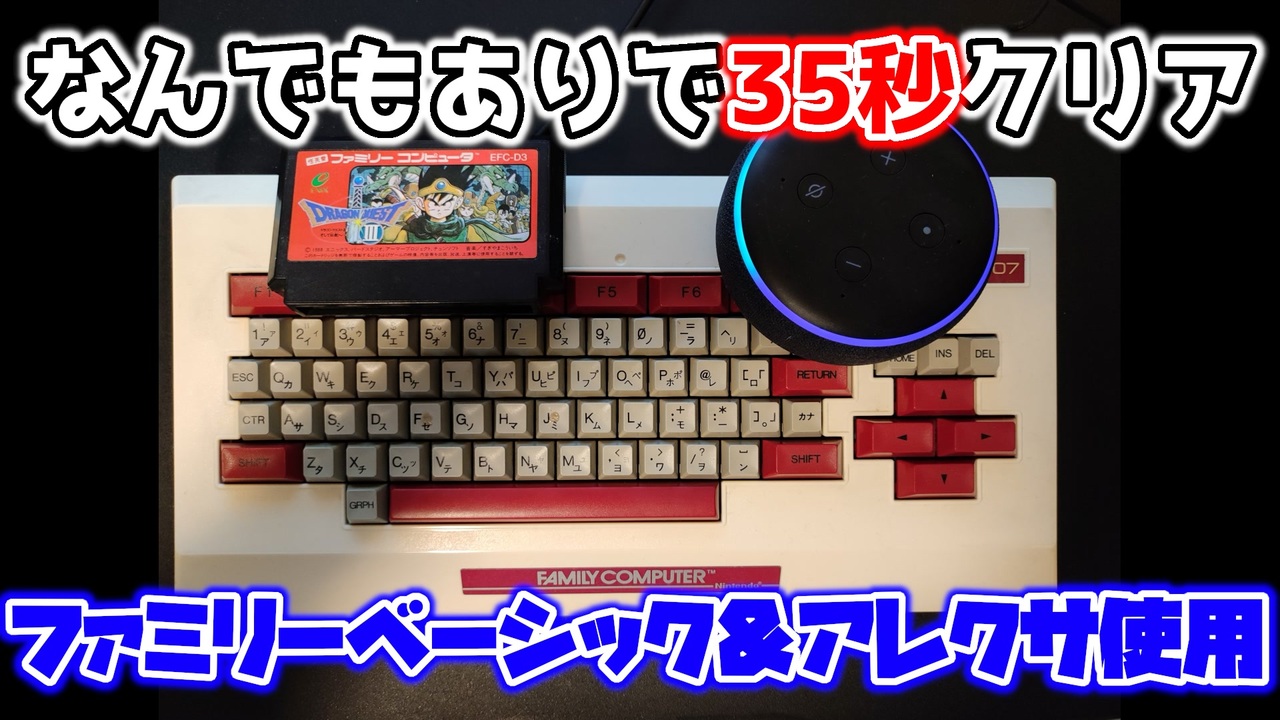 0.1秒タイマーを早く止めたので、正確には35.36くらいです。<br>(「いいね!」ボタンを押すと、アレクサに「ライデイン!」と言った時の反応を教えます)<br><br>【条件】<br>・電源投入~だいまおうをたおした(と、思われるメッセージ)が表示された瞬間まで を計測する<br>・バグ技・裏技の制限無し<br>・本体、ROMなど使用する機材に使用制限なし<br>・ROMに電流を流す、ホットプレートで温度管理など物理的な技も許可<br>・レトロフリーク、エミュレーターによる「事前準備した」ROMデータの上書きは禁止<br>・ファミコンが壊れても補償しかねます<br><br>【使用機材】<br>・ツインファミコン<br>・ドラゴンクエスト3前期ROM(ザラ刻印A)<br>・Echo Dot(エコードット)第3世代<br>・Amazon純正 スマートプラグ<br><br>その他のRTAはこちらから <a href="https://www.nicovideo.jp/mylist/35439832" target="_blank" rel="noopener">mylist/35439832</a><br><br>Twitter<br>→<a href="https://twitter.com/baku_zero" target="_blank" rel="noopener nofollow">https://twitter.com/baku_zero</a><br><br>youtube<br>→<a href="https://www.youtube.com/channel/UCjVBWNLfEhw6IYAtYmnuZ3g" target="_blank" rel="noopener nofollow">https://www.youtube.com/channel/UCjVBWNLfEhw6IYAtYmnuZ3g</a><br><br>niconico<br>→<a href="https://com.nicovideo.jp/community/co1236759" target="_blank" rel="noopener nofollow">https://com.nicovideo.jp/community/co1236759</a><br><br>Twitch<br>→<a href="https://www.twitch.tv/baku_zero" target="_blank" rel="noopener nofollow">https://www.twitch.tv/baku_zero</a><br><br>この動画で利用している株式会社スクウェア・エニックスを代表とする共同著作者が権利を所有する著作物及びスギヤマ工房有限会社が権利を所有する楽曲の転載・配布は禁止いたします。 © 1988 ARMOR PROJECT/BIRD STUDIO/SPIKE CHUNSOFT/SQUARE ENIX All Rights Reserved. © SUGIYAMA KOBO