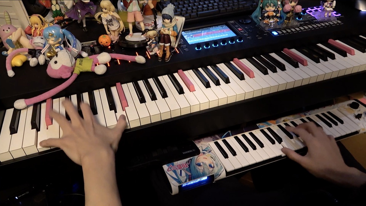まらしぃです。<br>今回は2台ピアノ?で遊んでみました。<br>YAMAHAさんから頂いたVOCALOID Keyboardを膝に置いて、千本桜を演奏させてもらいました。<br>鍵盤を押すとミクさんが歌ってくれます。めっちゃ楽しいです<br><br>最高にかっこいいご本家様 <a href="https://www.nicovideo.jp/watch/sm15630734" class="watch">sm15630734</a><br><br>・VOCALOID Keyboard<br><a href="https://jp.yamaha.com/products/music_production/synthesizers/vkb-100_miku" target="_blank" rel="noopener nofollow">https://jp.yamaha.com/products/music_production/synthesizers/vkb-100_miku</a><br>---------------------<br>前作 <a href="https://www.nicovideo.jp/watch/sm39829208" class="watch">sm39829208</a> マイリスト <a href="https://www.nicovideo.jp/mylist/8208046" target="_blank" rel="noopener">mylist/8208046</a> <a href="https://www.nicovideo.jp/mylist/11727978" target="_blank" rel="noopener">mylist/11727978</a> <a href="https://www.nicovideo.jp/mylist/33633393" target="_blank" rel="noopener">mylist/33633393</a><br>twitter <a href="https://twitter.com/marasy8" target="_blank" rel="noopener nofollow">https://twitter.com/marasy8</a> <br>公式LINE <a href="https://line.me/R/ti/p/%40marasy" target="_blank" rel="noopener nofollow">https://line.me/R/ti/p/%40marasy</a><br>まらしぃさんチャンネル <a href="https://ch.nicovideo.jp/marasy" target="_blank" rel="noopener nofollow">https://ch.nicovideo.jp/marasy</a><br>TikTok <a href="https://vt.tiktok.com/rnxkoS" target="_blank" rel="noopener nofollow">https://vt.tiktok.com/rnxkoS</a><br>bilibili <a href="https://space.bilibili.com/489391680" target="_blank" rel="noopener nofollow">https://space.bilibili.com/489391680</a><br><br>1/11に高橋洋子さんとビルボードライブ大阪でライブやらせてもらいます<br><a href="http://billboard-live.com/pg/shop/show/index.php?mode=detail1&event=12978&shop=2" target="_blank" rel="noopener nofollow">http://billboard-live.com/pg/shop/show/index.php?mode=detail1&event=12978&shop=2</a><br><a href="https://w1.onlineticket.jp/sf/tkt10/detail/3503840002?P6=c27&P1=0005&P59=1" target="_blank" rel="noopener nofollow">https://w1.onlineticket.jp/sf/tkt10/detail/3503840002?P6=c27&P1=0005&P59=1</a>