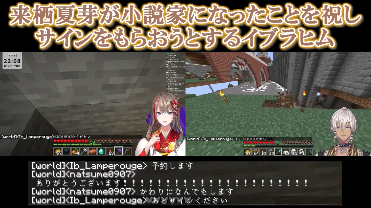 サインもらえるのえらいうらやましいな!<br>ん?今…<br><br>本家参考動画<br>・来栖夏芽<br>【マイクラ】1.18になるとどうなる?【 来栖夏芽/にじさんじ】<br><a href="https://youtu.be/0ATYX_hHYL4" target="_blank" rel="noopener nofollow">https://youtu.be/0ATYX_hHYL4</a><br>・イブラヒム<br>【Minecraft】1.18.1にアップデートされたので、敵も湧かないし、高さ制限もめちゃくちゃ上がった【にじさんじ/イブラヒム】<br><a href="https://youtu.be/JM4llj84l2k" target="_blank" rel="noopener nofollow">https://youtu.be/JM4llj84l2k</a><br><br>参考元チャンネル&Twitter<br>・来栖夏芽<br><a href="https://www.youtube.com/channel/UCRcLAVTbmx2-iNcXSsupdNA" target="_blank" rel="noopener nofollow">https://www.youtube.com/channel/UCRcLAVTbmx2-iNcXSsupdNA</a><br><a href="https://twitter.com/kurusu72me" target="_blank" rel="noopener nofollow">https://twitter.com/kurusu72me</a><br>・イブラヒム<br><a href="https://www.youtube.com/channel/UCmZ1Rbthn-6Jm_qOGjYsh5A" target="_blank" rel="noopener nofollow">https://www.youtube.com/channel/UCmZ1Rbthn-6Jm_qOGjYsh5A</a><br><a href="https://twitter.com/honmono_ibrahim" target="_blank" rel="noopener nofollow">https://twitter.com/honmono_ibrahim</a><br><br>ニコニコのダイコンマンリスト<br>「バーチャルYouTuberシリーズ」↓<br><a href="https://www.nicovideo.jp/mylist/62551838" target="_blank" rel="noopener">mylist/62551838</a><br>「バーチャルYouTuberシリーズ2」↓<br><a href="https://www.nicovideo.jp/mylist/67858437" target="_blank" rel="noopener">mylist/67858437</a><br>「バーチャルYouTuberシリーズ3」↓<br><a href="https://www.nicovideo.jp/mylist/71340675" target="_blank" rel="noopener">mylist/71340675</a><br><br>ダイコンマンのTwitter<br><a href="https://twitter.com/Daikon_Man_V" target="_blank" rel="noopener nofollow">https://twitter.com/Daikon_Man_V</a>