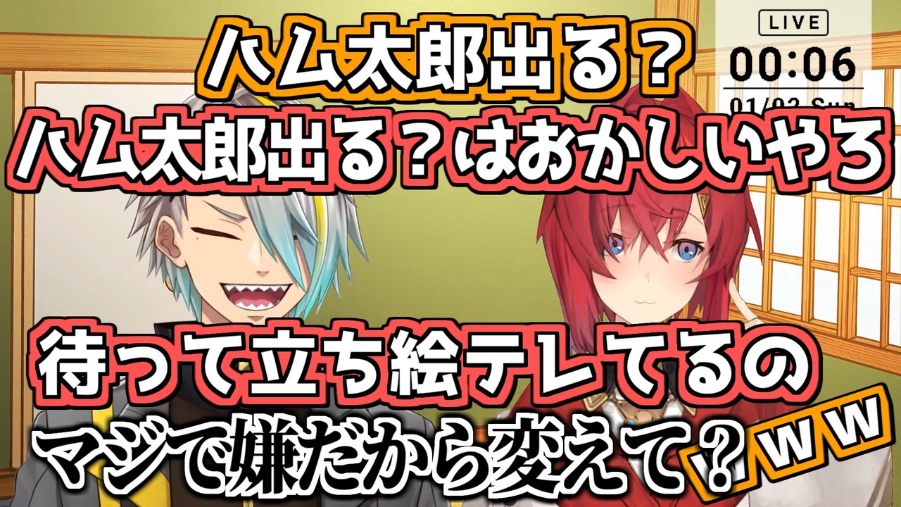 【元動画】<br>【新春飲酒雑談】年明けだ~~!!!酒だ~~~!!!初夢聞かせろォ~~~!!【歌衣メイカ】<br><a href="https://www.youtube.com/watch?v=DHiJYkENdNs" target="_blank" rel="noopener nofollow">https://www.youtube.com/watch?v=DHiJYkENdNs</a><br>5時間1分頃~<br><br>歌衣メイカ<br><a href="https://www.youtube.com/channel/UC7-N7MvN5muVIHqyQx9LFbA" target="_blank" rel="noopener nofollow">https://www.youtube.com/channel/UC7-N7MvN5muVIHqyQx9LFbA</a><br>にじさんじ/アンジュ・カトリーナ<br><a href="https://www.youtube.com/channel/UCHVXbQzkl3rDfsXWo8xi2qw" target="_blank" rel="noopener nofollow">https://www.youtube.com/channel/UCHVXbQzkl3rDfsXWo8xi2qw</a><br><br>BGM:DOVA-SYNDRONE<br>エンドイラスト:兎々とぅるる様<br><a href="https://www.youtube.com/channel/UCBt-NcLVInvvsBvDEUeic4A" target="_blank" rel="noopener nofollow">https://www.youtube.com/channel/UCBt-NcLVInvvsBvDEUeic4A</a><br>オタマトーン:鷹宮リオン様<br><a href="https://www.youtube.com/channel/UCV5ZZlLjk5MKGg3L0n0vbzw" target="_blank" rel="noopener nofollow">https://www.youtube.com/channel/UCV5ZZlLjk5MKGg3L0n0vbzw</a><br><br>誰とコラボしたかわかるサイト<br>--VTuber Collab Map-- <a href="https://vchama.xyz/" target="_blank" rel="noopener nofollow">https://vchama.xyz/</a>