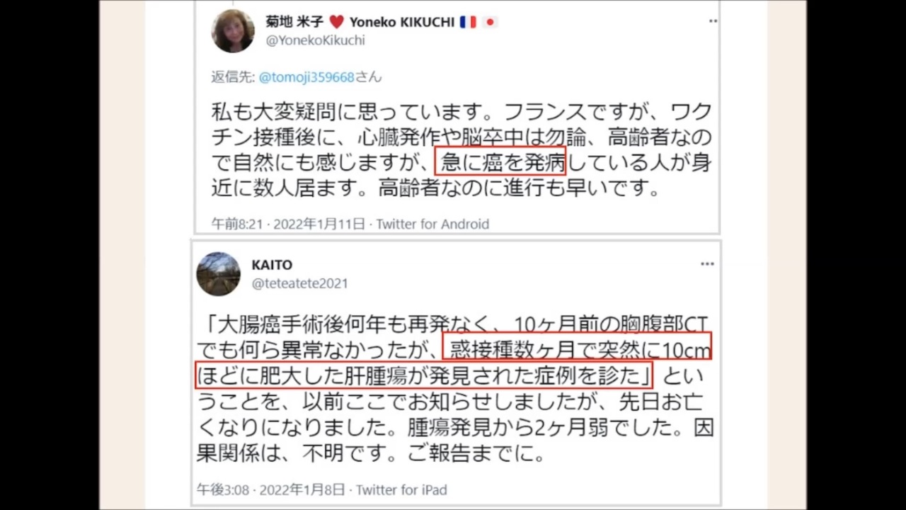 ワクチンを打っても時間が余り経っていないならイベルメクチンで(副作用が)回復するようです。( richardneversurrender のブログより)<br><br>YouTubeの同じ動画は削除されました。<br>『COVID-19(新型コロナウイルス感染症)ワクチンに関して、地域の衛生当局または WHO(世界保健機関)の専門家間で広く合意されている内容と矛盾する主張を展開することは、YouTube で許可されていません。』<br>身近の体験を伝えることがなんで誤った医療情報になる?<br>いかにも公的である的な言い方をするが、私企業の一経営者の趣向に過ぎない<br><br>引用元<br>あなたの身体は食べ物で創られている<br><a href="https://ameblo.jp/amiraclehappens/entry-12721531473.html" target="_blank" rel="noopener nofollow">https://ameblo.jp/amiraclehappens/entry-12721531473.html</a><br><br />日月神示に<br>『「死ぬことで助ける」と「生かすことで助ける」の状況はあるが‥』との表現があります<br>これから先(12年程度)の辛苦さを示しているとも思えます<br>『食糧難の混乱、無政府状態から同胞を食する人まで現れる』とも<br>今日明日の食事で死を覚悟しなければならない家族と、ある程度(食について)安泰な人が混在した時、一体何が起こるだろうか<br>"今だけ" の駄賃を貰ってDS側に付いている人は、自らの行いがより強烈な地獄に向かわせていることに気付いて欲しい<br><br>ロックフェラーやロスチャイルドでさえ、そんな地獄の様相の上に立てたとて、果たして幸福や安泰で居られるだろうか<br>日月には『空を飛ぶ人と地を這う人に分かれる』とあった<br>移動には航空機を使って(会合を)回避するのかも知れないが、一歩外を見回せば地獄‥<br>そんな世界を標榜する‥ 今の時点で既に狂気としか思えない<br>今ある豊かさや文化などたちまち崩壊するだろうし、航空機を製造維持するコミュニティーなど数万人で出来る訳がない<br>十億人を残すと目論んでいるのかも知れないが、殆どがゾンビのような体(脳を含めて)では墜落が頻発するものしか造れないだろう<br><br>一方、『死ぬことで助ける』という側面があるなら‥<br>何が正しく何がそうでないのか‥<br>確かに強弁(自らは正しいと思い込むこと)そのものがより悲惨をもたらすことも‥<br>それらの側面というのは、同一平面というより上下の関係になっていることの方が多そうだ<br>余りに上の立場からの側面など、英知吸収の途上からは認識しようがない<br><br><br>このIDはウクライナ関連動画(複数)でアカウント制限(投稿不可)になったため別アカを作りました<br><a href="https://www.nicovideo.jp/user/126388289" target="_blank" rel="noopener nofollow">https://www.nicovideo.jp/user/126388289</a>