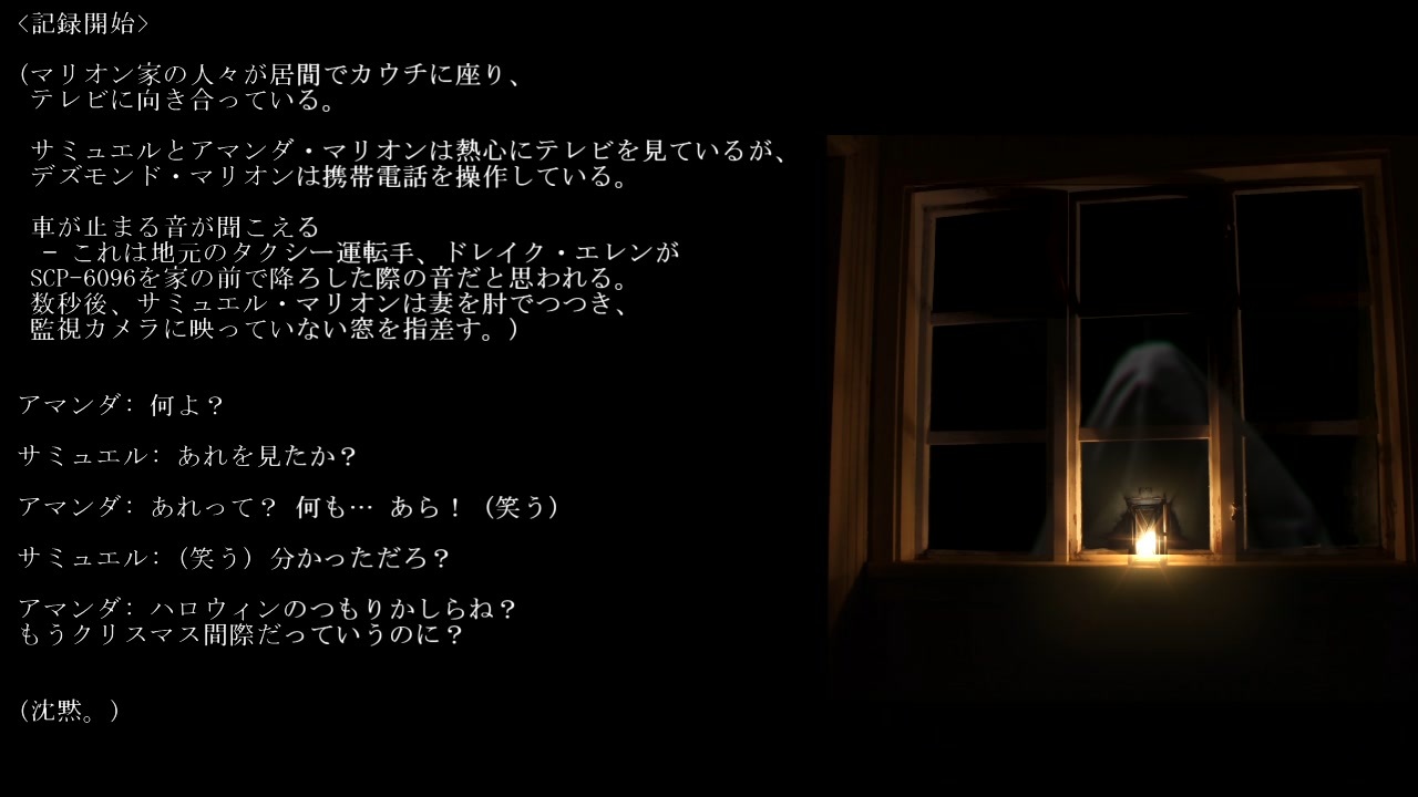 今年最初の胸糞オブジェクトだよ<br><br>Author: Tanhony<br>Title: SCP-6096 - 御客様<br>Source: <a href="http://scp-jp.wikidot.com/scp-6096" target="_blank" rel="noopener nofollow">http://scp-jp.wikidot.com/scp-6096</a><br>CC BY-SA 3.0<br><br>画像情報<br>"Ghost of my past" by Soumyadeep Paul is licensed under CC BY 2.0.<br><br><br><br><span style="color: #000000; font-size: 14px;"><strong>夜鷹が鳴く頃に 見て欲しいもの入れ(創作物)</strong></span><br><span style="color: #006699; font-size: 14px;"><a href="https://www.nicovideo.jp/mylist/66904506" target="_blank" rel="noopener">mylist/66904506</a></span><br><span style="color: #000000; font-size: 14px;">(SCPシリーズ他まとめ)<br><br>ゲームの紹介もしているので よければどうぞ</span><br><span style="color: #006699; font-size: 14px;"><a href="https://www.nicovideo.jp/mylist/60170329" target="_blank" rel="noopener">mylist/60170329</a></span><br><br>あかりちゃんの動画<br><a href="https://www.nicovideo.jp/mylist/72209386" target="_blank" rel="noopener">mylist/72209386</a><br>