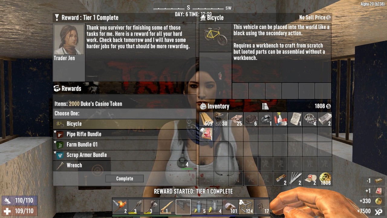 念願の自転車を手に入れたゾ!(確定報酬) <br><br>前提:死ぬな<br>禁止:クエキャン∞漁り+再起クエ厳選+キャットウォーク透明化+自販機利用コイン稼ぎ(今後増えるかも?)<br>目標:各トレーダーのクエティア5解放<br>最終:コンクリバイオーム<br><br>ナイトメア(常走)、インセイン(被ダメ250%、与ダメ50%、レイジ発生率50%)<br><span style="color: #ff0000;">一日30分</span>、昼12時間、シングルプレイ、ランダムマップ<br>プレイヤーブロック与ダメ<span style="color: #ff0000;">25%</span>、敵性ブロック与ダメ<span style="color: #ff0000;">300%</span><br><span style="color: #ff0000;">フェラルセンス常時</span>(ゾンビの感知力が2倍以上に上昇)<br>取得量25%、<span style="color: #ff0000;">取得Exp300%</span>、自然再設置off、死亡時全ロスト<br>ブラッドムーンホード7日毎 ブレoff 同時出現64体、空輸7日毎&印off<br><br><a href="https://www.nicovideo.jp/watch/sm39835583" class="watch">sm39835583</a>←始 <a href="https://www.nicovideo.jp/mylist/72372342" target="_blank" rel="noopener">mylist/72372342</a> 投稿予定日:日(live)水<br><br>現行他動画→Raft <a href="https://www.nicovideo.jp/watch/sm39562039" class="watch">sm39562039</a> BM <a href="https://www.nicovideo.jp/watch/sm39658092" class="watch">sm39658092</a><br>他動画→<a href="https://www.nicovideo.jp/mylist/50733328" target="_blank" rel="noopener">mylist/50733328</a> コミュ+連絡場所→co5456168<br>ツベ→<a href="https://www.youtube.com/channel/UCLeG6t9v-BVQSfKFXo9cuOA/playlists" target="_blank" rel="noopener nofollow">https://www.youtube.com/channel/UCLeG6t9v-BVQSfKFXo9cuOA/playlists</a><br><br>ダイマ→<a href="http://7daystodie.com//" target="_blank" rel="noopener nofollow">http://7daystodie.com//</a>