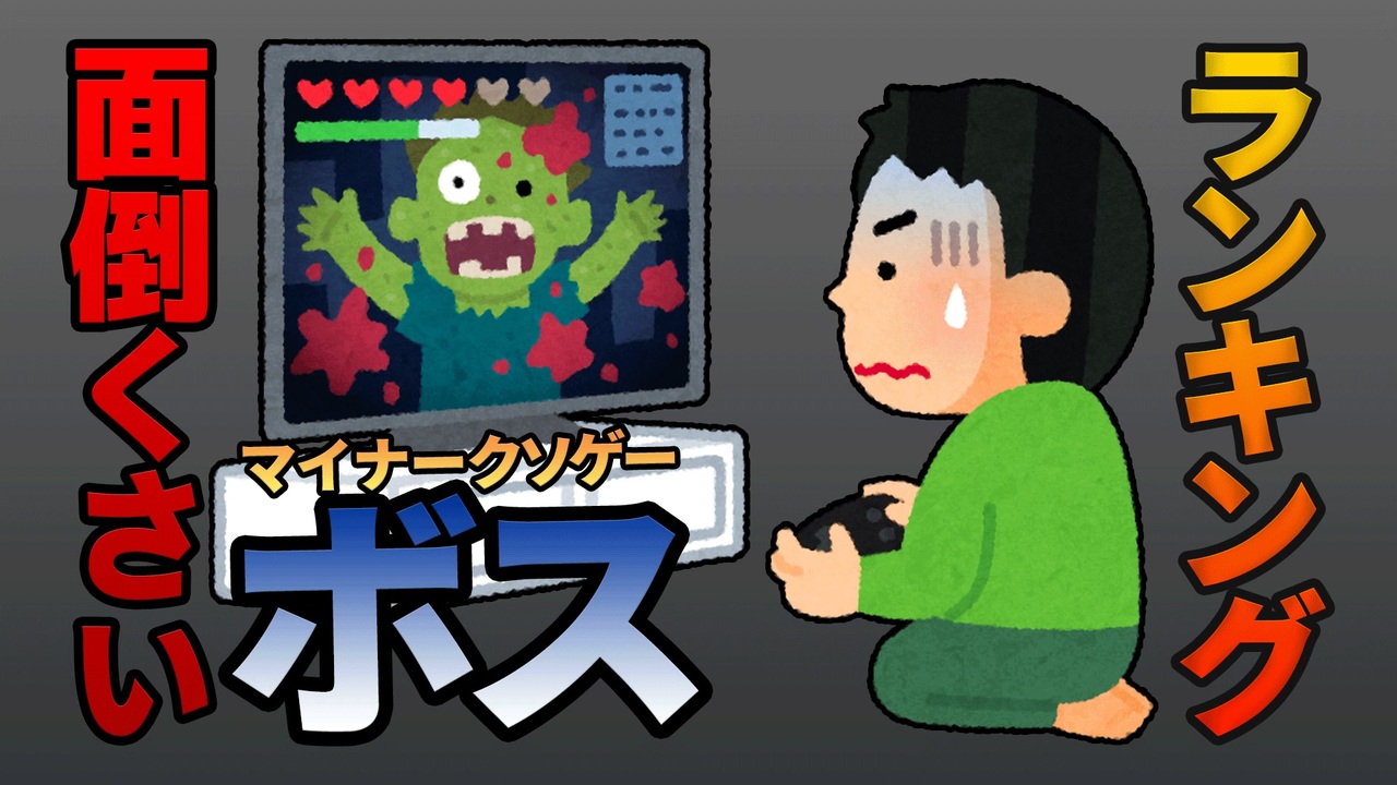 今回は【<strong>面倒くさいボス</strong>】トップ5を紹介します。<br>これまでプレイしたマイナークソゲーから選びました。<br><br>5位→ <a href="https://www.nicovideo.jp/watch/sm36981709" class="watch">sm36981709</a><br>4位→ <a href="https://www.nicovideo.jp/watch/sm33153784" class="watch">sm33153784</a><br>3位→ <a href="https://www.nicovideo.jp/watch/sm38696342" class="watch">sm38696342</a><br>2位→ <a href="https://www.nicovideo.jp/watch/sm28912097" class="watch">sm28912097</a><br>1位→ <a href="https://www.nicovideo.jp/watch/sm37152084" class="watch">sm37152084</a><br><br><br><br>《 支援&宣伝&応援してくださる方に感謝 m(_ _)m 》<br><br><br><br>おもしろクソゲー品評会大賞作品→ <a href="https://www.nicovideo.jp/mylist/70550813" target="_blank" rel="noopener">mylist/70550813</a><br>おもしろクソゲー(今年度)→ <a href="https://www.nicovideo.jp/mylist/72278120" target="_blank" rel="noopener">mylist/72278120</a><br><br><br>Twitter◆<a href="https://twitter.com/cut_uma_3rd/" target="_blank" rel="noopener nofollow">https://twitter.com/cut_uma_3rd/</a><br>Fanbox◆<a href="https://cut-uma-3rd.fanbox.cc/" target="_blank" rel="noopener nofollow">https://cut-uma-3rd.fanbox.cc/</a><br>※動画の裏話が聞けるラジオ、支援者限定Discodeなどの特典がありまぁす