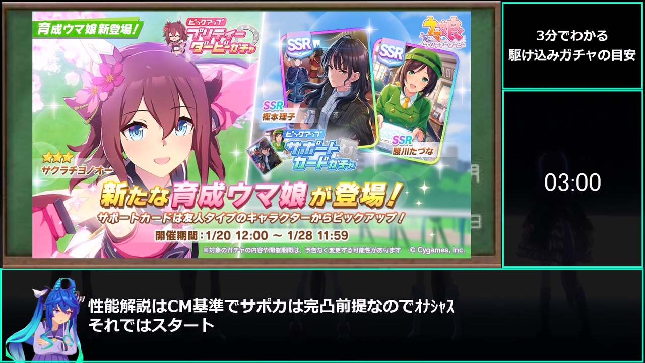 安心おばさんの解説動画忙しくてスルーしちゃったけど微妙やったね<br><br>対人戦基礎知識<br>初級編→<a href="https://www.nicovideo.jp/watch/sm39432258" class="watch">sm39432258</a><br>中級編→<a href="https://www.nicovideo.jp/watch/sm39432514" class="watch">sm39432514</a><br>スキル編→<a href="https://www.nicovideo.jp/watch/sm39433182" class="watch">sm39433182</a><br>スキルランキング編→<a href="https://www.nicovideo.jp/watch/sm39407156" class="watch">sm39407156</a><br>加速について→<a href="https://www.nicovideo.jp/watch/sm39583007" class="watch">sm39583007</a><br>コース別加速スキルランキング→<a href="https://www.nicovideo.jp/watch/sm39774678" class="watch">sm39774678</a><br><br>ツイッターも始めたのでよろしくなす<br><a href="https://twitter.com/umamusumetama" target="_blank" rel="noopener nofollow">https://twitter.com/umamusumetama</a><br><br>↓にあるシリーズから過去動画みれるぞ。<br>もうマイリスの時代じゃないんだ。悔しいけど仕方ないんだ。<br>