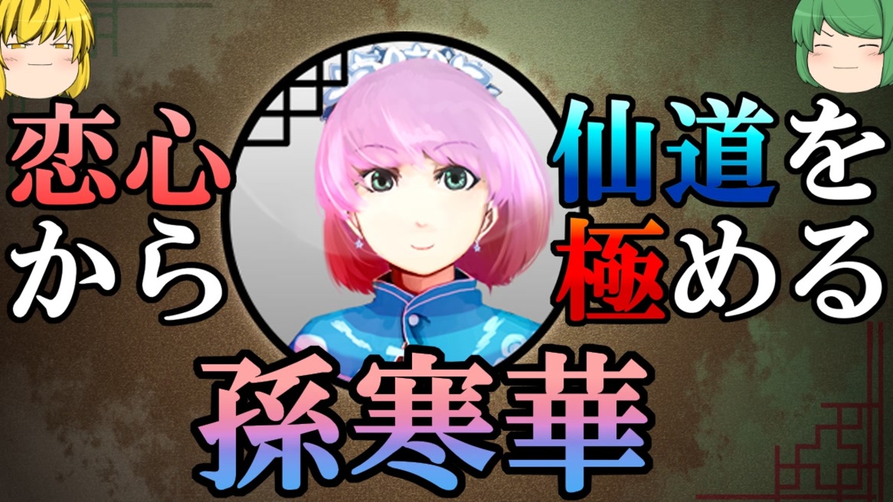 この動画は東方projectの二次創作です。AquesTalkライセンス購入済み。<br> <br>◇反三国志二次創作同人誌「叔漢二國史」<a href="https://danxiawangchao.booth.pm/items/2029329" target="_blank" rel="noopener nofollow">https://danxiawangchao.booth.pm/items/2029329</a><br><br>三国志のメジャーではないけれど面白い人物や評価されるべき人物を紹介していきます。<br>呉に始まって陳に終わる六朝時代。この時代は、宗教による文化の成長が目覚ましい時代でもありました。<br>道教もまたその例にもれず、この時代に大きな成長を遂げたひとつであり、今回解説する孫寒華は、孫家の宗室という身分を棄て道教の世界に生きた女性でした。<br>それでは彼女が道教と出会い、やがて神となるまで。そして彼女の出自の謎について考察していきましょう。<br><br>▷第四十六回「馬順・馬統・馬安仁」<a href="https://www.nicovideo.jp/watch/sm39819245" class="watch">sm39819245</a><br>▷外伝「三国志の英雄たちが使用した刀剣」前編<a href="https://www.nicovideo.jp/watch/sm40056307" class="watch">sm40056307</a><br> 後編<a href="https://www.nicovideo.jp/watch/sm40130187" class="watch">sm40130187</a><br><br>◆◆◆◆◆◆◆◆◆◆◆◆◆◆◆◆◆◆◆◆◆◆◆<br>参考文献、補足など<br>亶夏王朝府 <a href="https://danxiawangchao.hatenablog.com/" target="_blank" rel="noopener nofollow">https://danxiawangchao.hatenablog.com/</a><br>この動画の参考文献 <a href="https://danxiawangchao.hatenablog.com/entry/2022/01/20/234637" target="_blank" rel="noopener nofollow">https://danxiawangchao.hatenablog.com/entry/2022/01/20/234637</a><br><br>この動画のイラストまとめ<br>Pixiv <a href="https://www.pixiv.net/artworks/95683298" target="_blank" rel="noopener nofollow">https://www.pixiv.net/artworks/95683298</a><br>ニコニコ静画 <a href="https://seiga.nicovideo.jp/seiga/im10887752" target="_blank" rel="noopener">im10887752</a><br>BOOTH <a href="https://danxiawangchao.booth.pm/items/3598164" target="_blank" rel="noopener nofollow">https://danxiawangchao.booth.pm/items/3598164</a><br><br>YouTubeにもアップロードしています。よろしければ評価、チャンネル登録よろしくお願いします。<br><a href="https://youtu.be/nVtn7kjM5gM" target="_blank" rel="noopener nofollow">https://youtu.be/nVtn7kjM5gM</a><br>◆◆◆◆◆◆◆◆◆◆◆◆◆◆◆◆◆◆◆◆◆◆◆<br><br>音楽効果音提供<br>チンドン演歌/稿屋 隆 様<br>ミスト/甘茶の音楽工房 様<br>春の輝き/甘茶の音楽工房 様<br>華恋~KALEN~/畑中ゆう 様<br>Petals of lotus/こおろぎ 様<br>効果音提供/効果音ラボ 様<br><br>映像提供<br>Motion Elements 様<br><br>Seiren Voice Demo(AIボイスチェンジャー)<br><a href="https://seiren-voice.dmv.nico/" target="_blank" rel="noopener nofollow">https://seiren-voice.dmv.nico/</a><br>