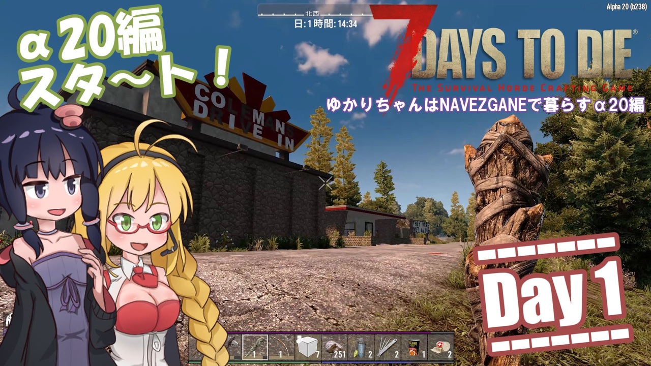 ゆかりちゃんとマキちゃんの2人でお送りする、NAVEZGANE1周旅行が目的の動画です。<br>1日目は2人で新しくなった湖周辺を探索するようです。<br>※ゲーム設定は基本デフォルト。以下の設定だけ変更しています。<br> 1日の時間90分、経験値200%、ホード64体<br>※私のPC性能とエンコードの関係で画質が見苦しくなる箇所が頻発してます(特に屋外、遠景描写)<br> なるべく綺麗に見せられるよう試行錯誤中ですが予めご了承ください。<br><br>・大変お待たせしました!待ちに待ったα20で気合が入りすぎたかもしれないtakuです。<br> α20編は1日ずつ進めていく予定です。おかげで尺がパンパンに(笑)<br><br>!ボイロ&動画内容の調整・更新点報告!<br>・ゆかりにEXVOICE導入<br>・ゆかりとマキに新規描きおろし差分追加<br>・新コーナー追加<br>・糖分量UP(当社比)<br><br>各編パート1はこちら<br>α18編さいしょ <a href="https://www.nicovideo.jp/watch/sm36721764" class="watch">sm36721764</a><br>α19編さいしょ <a href="https://www.nicovideo.jp/watch/sm37504239" class="watch">sm37504239</a><br><br>※使用させていただいた楽曲・素材はコンテンツツリーにまとめております。<br> また広告者様や使用した素材は動画の最後にてご紹介させていただきます。<br><br><a href="https://www.nicovideo.jp/watch/sm39798750" class="watch">sm39798750</a> (α19編ラストおまけ) ←前 <a href="https://www.nicovideo.jp/mylist/68780685" target="_blank" rel="noopener">mylist/68780685</a> 次→ <a href="https://www.nicovideo.jp/watch/sm40100679" class="watch">sm40100679</a><br /><br>素敵な支援絵を頂いております。感謝感謝。<br>まとめたのはこちら→ <a href="https://seiga.nicovideo.jp/clip/2924274" target="_blank" rel="noopener">clip/2924274</a>