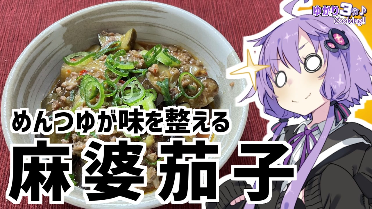 結月ゆかりを使用した料理動画です<br><br>ネギを買ったときに武器防具屋のオヤジに言われた一言は『いいね!』を押して確認してくれよな!<br><br>今回使用した材料<br>ナス:3本 白ネギ:半分<br>合挽き:150g 豆板醤:大さじ1/2<br>ニンニク:小さじ1 ショウガ:小さじ1<br>鷹の爪:1個 麺つゆ(4倍):大さじ1と1/2<br>かたくり粉:適量 ラー油:小さじ1<br>小ネギ:適量<br><br>1年前の麻婆茄子:<a href="https://www.nicovideo.jp/watch/sm38227802" class="watch">sm38227802</a><br>前回の鮭炒飯:<a href="https://www.nicovideo.jp/watch/sm39924048" class="watch">sm39924048</a><br>VOICEROID劇場 新訳猫町:<a href="https://www.nicovideo.jp/watch/sm39506126" class="watch">sm39506126</a><br>やっと完結したJK旅京都お花見編:<a href="https://www.nicovideo.jp/watch/sm39639517" class="watch">sm39639517</a><br><br>オススメのボイロ劇場<br>茜ちゃんと葵ちゃんの現代怪異占い:<a href="https://www.nicovideo.jp/watch/sm38263500" class="watch">sm38263500</a><br><br>ツイッター:<a href="https://twitter.com/mrt89244817" target="_blank" rel="noopener nofollow">https://twitter.com/mrt89244817</a>