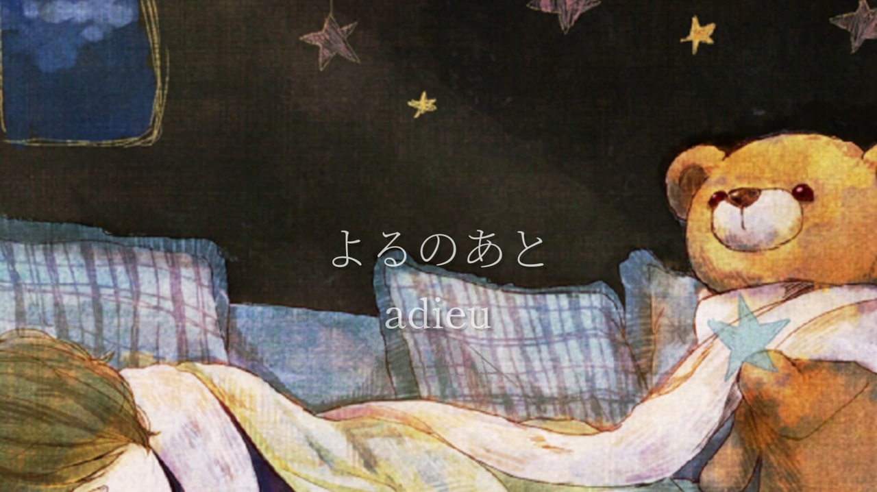 Instagramはじめたよ <a href="https://www.instagram.com/fourdumi/" target="_blank" rel="noopener nofollow">https://www.instagram.com/fourdumi/</a><br><br>よるのあと / adieu<br><br>イラスト:くまお♀ <a href="https://twitter.com/kuma_oooo" target="_blank" rel="noopener nofollow">https://twitter.com/kuma_oooo</a><br>お借りした伴奏 ( <a href="https://www.youtube.com/watch?v=WZx_cdYDiyo" target="_blank" rel="noopener nofollow">https://www.youtube.com/watch?v=WZx_cdYDiyo</a> ) thx!!<br><br>sung by ちょまいよ (<a href="https://www.nicovideo.jp/mylist/14929300" target="_blank" rel="noopener">mylist/14929300</a>)<br>twitter:<a href="http://twitter.com/chomaiyo" target="_blank" rel="noopener nofollow">http://twitter.com/chomaiyo</a><br><br>※Please don't transfer this video to other sites.