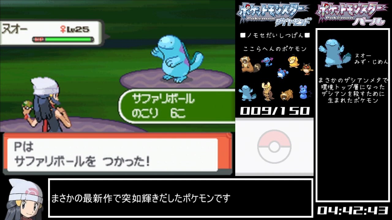 君たちもほぼ同じものを2回も見たくないだろ、これはそういう取引さ<br><br>レギュレーション<br>・ダイヤモンド・パールのみ使用可能(プラチナ・HGSSは禁止)<br>・乱数調整・バグは禁止<br>・使用ロムはすべて「はじめから」<br>・ロムの使用個数に制限なし<br>・計測開始点はタイトル画面でスタート直後<br>・計測終了点はポケモン図鑑が埋まったのを確認し終えたら<br><br>その他注意事項<br>・参考記録(85時間の記録をそのまま投稿できるサイトがないため)<br>・録画環境の都合上、基本1ロムのみ動かします<br><br>part1→<a href="https://www.nicovideo.jp/watch/sm39792200" class="watch">sm39792200</a><br>次→下にあるシリーズからよろしく<br>これのマイリス→<a href="https://www.nicovideo.jp/mylist/72359088" target="_blank" rel="noopener">mylist/72359088</a><br><br>無編集前編→<a href="https://www.twitch.tv/videos/1227891406" target="_blank" rel="noopener nofollow">https://www.twitch.tv/videos/1227891406</a><br>無編集後編→<a href="https://www.twitch.tv/videos/1227891844" target="_blank" rel="noopener nofollow">https://www.twitch.tv/videos/1227891844</a><br><br>うp動画まとめ→<a href="https://www.nicovideo.jp/mylist/71230916" target="_blank" rel="noopener">mylist/71230916</a><br><br>ノモセだいしつげん~202ばんどうろまで<br><br>※この動画の一部または全部を外部サイト等へ転載することを禁じます。<br> 動画紹介等で動画の一部を引用するのは構いません。