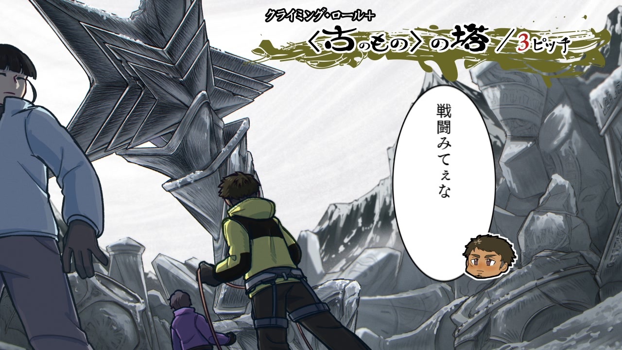 <strong>『カエラズノケン ~狂気山脈第三次登山隊の顛末~』<br>頂 登山家のものがたり(前半)</strong><br><br><br>人の足がまだ到達していない高みが、神の世界だとするならば、<br>その空白地帯を踏みしめ、人の世界へ塗り替える登山家は、<br>すなわち神殺しの存在ともいえるだろう。<br><br>誰が呼んだか、狂気山脈。<br>世界創造の起点、文字通り神々の山嶺。<br>狂気なくして至れぬ地。<br><br>神々の思惑も、争いも、全て踏み越える登山家のものがたり。<br>「そこに登れるものがあるなら、オレたちはどこだって登るんだ」<br><br><br><span style="color: #000000; font-size: 14px;">←前:</span><a href="https://www.nicovideo.jp/watch/sm39701452" class="watch">sm39701452</a><span style="color: #000000; font-size: 14px;">|</span><a href="https://www.nicovideo.jp/mylist/66949494" target="_blank" rel="noopener">mylist/66949494</a><span style="color: #000000; font-size: 14px;">|次→</span><a href="https://www.nicovideo.jp/watch/sm39950758" class="watch">sm39950758</a><br><br><br><span style="color: #000000; font-size: 10px;">※エンドカード・ファンアート募集中。<br> </span><span style="font-size: 10px;">サイズは横1280×縦720pixel、Twitter上でハッシュタグ「#カエラズFA」にてご投稿いただけましたら幸いです。</span><br><br><br><span style="color: rgba(0, 0, 0, 0.87); font-size: 15px;">******************<br>シナリオはこちら<br>(旧CoC対応)<a href="https://dappleox.booth.pm/items/1334864" target="_blank" rel="noopener nofollow">https://dappleox.booth.pm/items/1334864</a><br>(新CoC対応)<a href="https://dappleox.booth.pm/items/1692465" target="_blank" rel="noopener nofollow">https://dappleox.booth.pm/items/1692465</a></span>