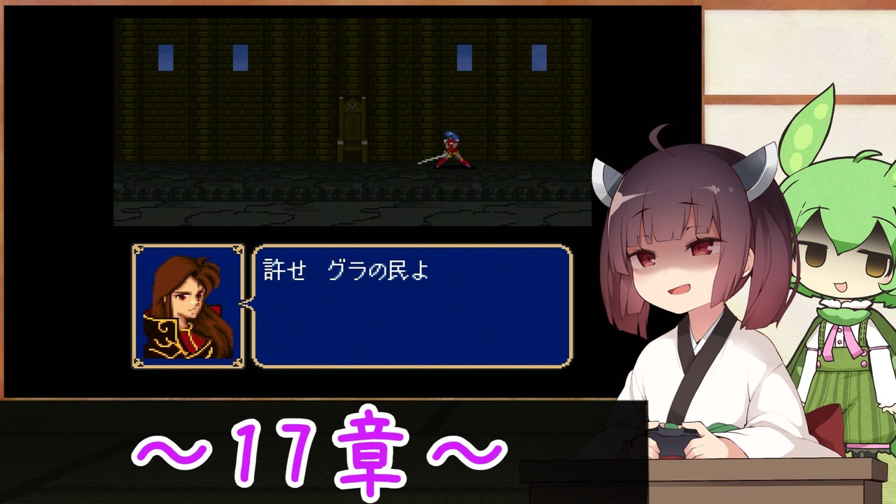 <span style="color: #9900ff; font-size: 16px;">グラ王国の皆さん、</span><span style="color: #9900ff; font-size: 24px;"><strong><i>お 別 れ で す !</i></strong></span><br><br>☆縛り内容☆<br><strong>1、『話す』コマンドを使用して敵ユニットを仲間にすることを禁止。<br>2、仲間になったユニットは全員生存させる。<br>3、町、村を全て守る。<br>4、終章クリア時に全仲間ユニットをLv20の状態にする。<br>5、Lv20になったユニットは以降の章に出撃することを禁止する。<br>6、秘密の店の利用を禁止する。<br>7、MAP上の敵ユニットを0にしてから『制圧』する。</strong><span style="color: #ff0000;"><strong>※ただし一部例外有り</strong></span><br><span style="color: #262626;"><strong>8、変身した状態のチェイニーで戦闘を行ってはいけない</strong></span><br><br> 前:<a href="https://www.nicovideo.jp/watch/sm39923912" class="watch">sm39923912</a> 次:<a href="https://www.nicovideo.jp/watch/sm39987322" class="watch">sm39987322</a><br><br>この動画のシリーズ:<a href="https://www.nicovideo.jp/series/273013" target="_blank" rel="noopener">series/273013</a><br><br><br>使用ソフト VOICEROID+東北きりたんEX<br> VOICEROID2 東北イタコ<br> VOICEVOX:ずんだもん<br>立ち絵素材 :akihiyo様制作 立ちずんだもん素材&立ち東北イタコ素材<br> ふゆき様制作 東北きりたん_座ってる立ち絵素材<br>その他素材 :demsato様制作 倍速きりたん360<br> ニコニコモンズの皆様(コンテンツリー参照)<br />VOICEVOXホームページ:<a href="https://voicevox.hiroshiba.jp/" target="_blank" rel="noopener nofollow">https://voicevox.hiroshiba.jp/</a><br>編集ソフト :YMM4<br>投稿動画part1まとめマイリスト:<a href="https://www.nicovideo.jp/mylist/72070653" target="_blank" rel="noopener">mylist/72070653</a><br>あまり喋らないツイッター:<a href="https://twitter.com/titeinotami" target="_blank" rel="noopener nofollow">https://twitter.com/titeinotami</a>
