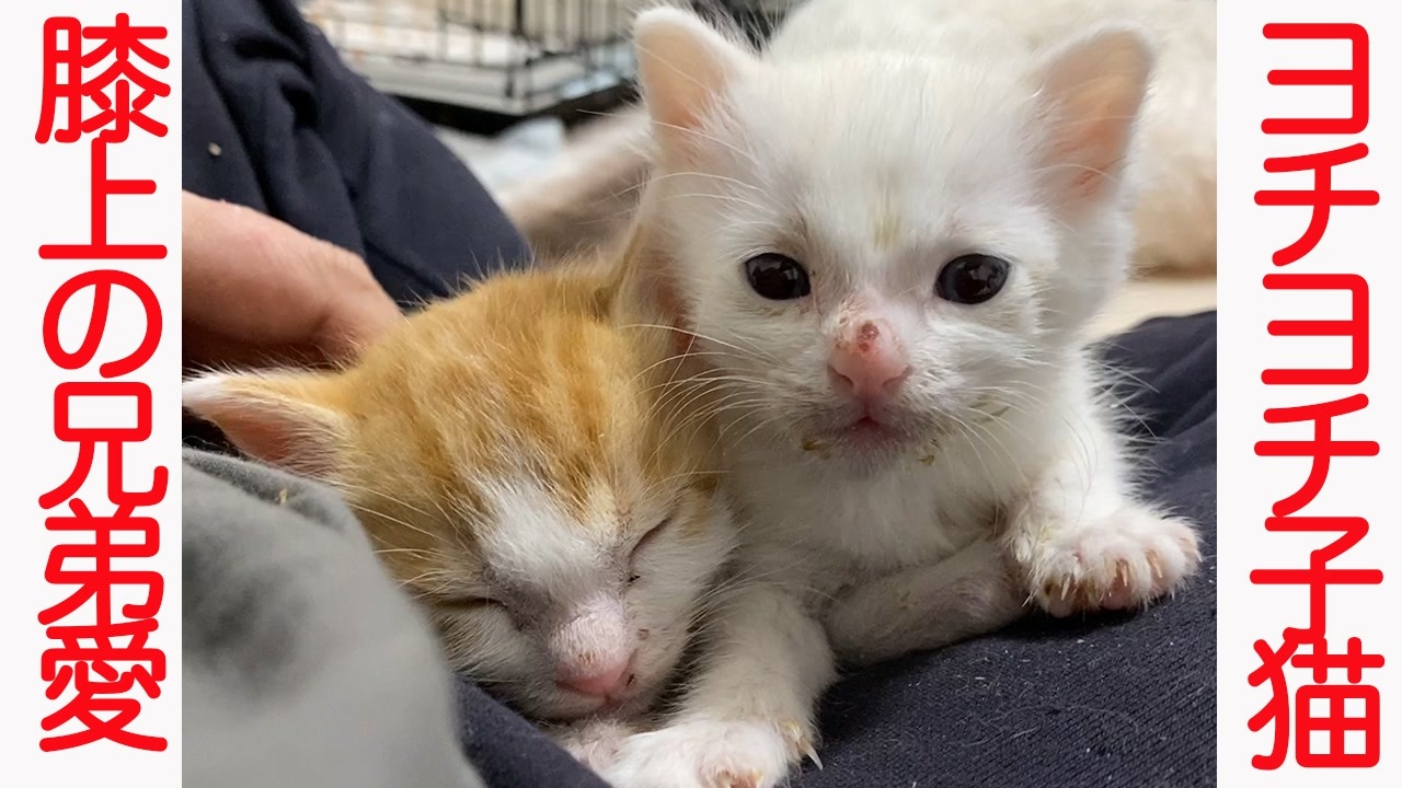障害疑いの子猫、兄弟子猫と膝上で兄弟愛を見せる 4:36